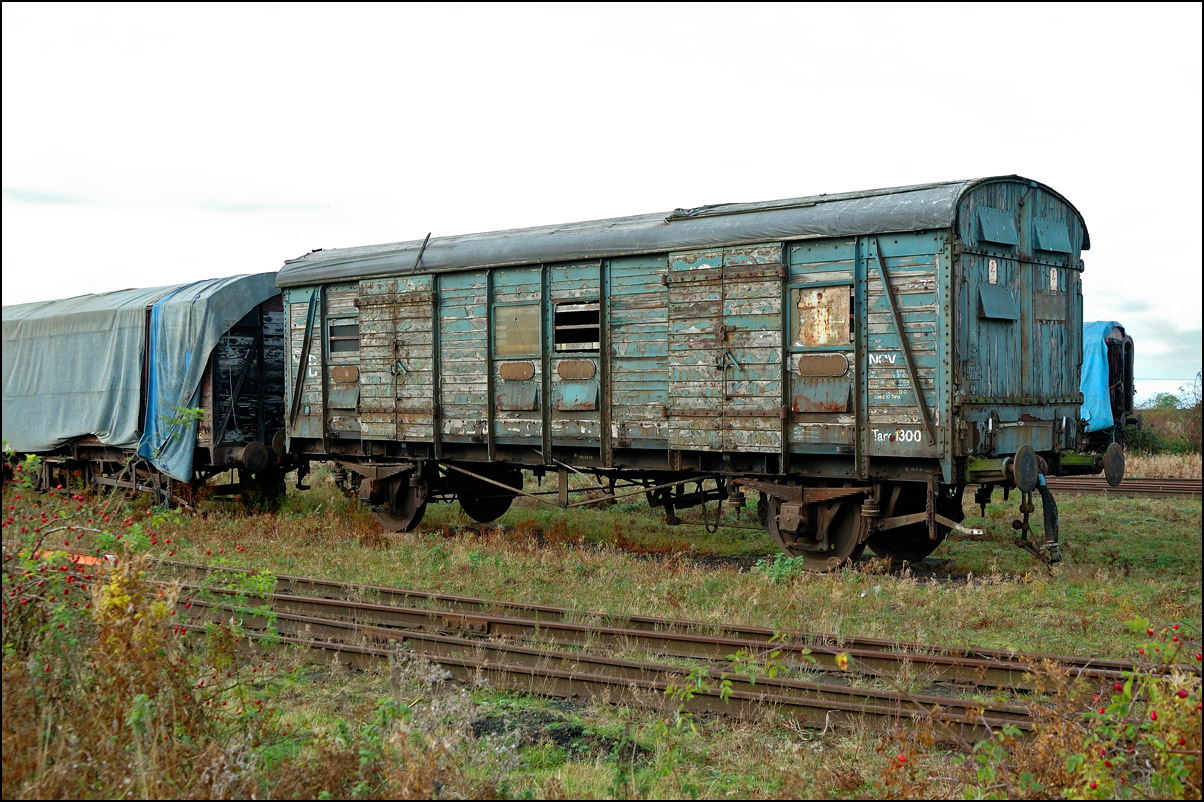 One of the items of rolling stock on the site ostensibly for restoration is this character-filled NCV. |