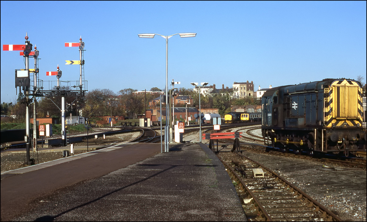 Two years after the picture shown above was taken 08781 was the Worcester shunter which I pictured leaving the station and going towards the roofless engine shed.