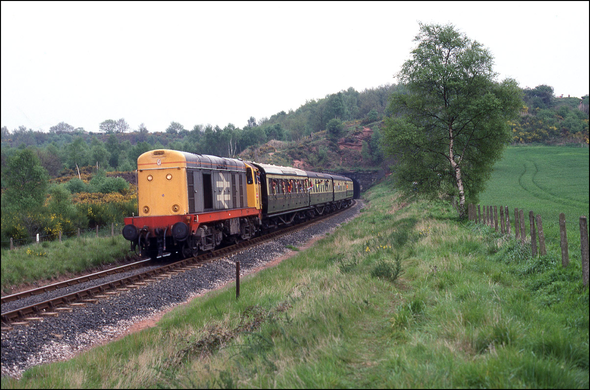 The next visitor to approach Bewdley Tunnel during the SVR's gala on 7 May 1988 was 20170 with a short set of 4 coaches. The price of an annual lineside photographic pass was £10.00 and even though I used it only twice