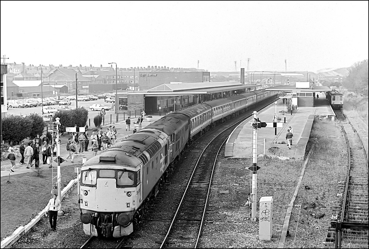 I've always been a fan of semaphore signalling and in 1990 there were plenty at Barrow in Furness to keep me amused. On Ntework North-West Day, 20 October 1990,