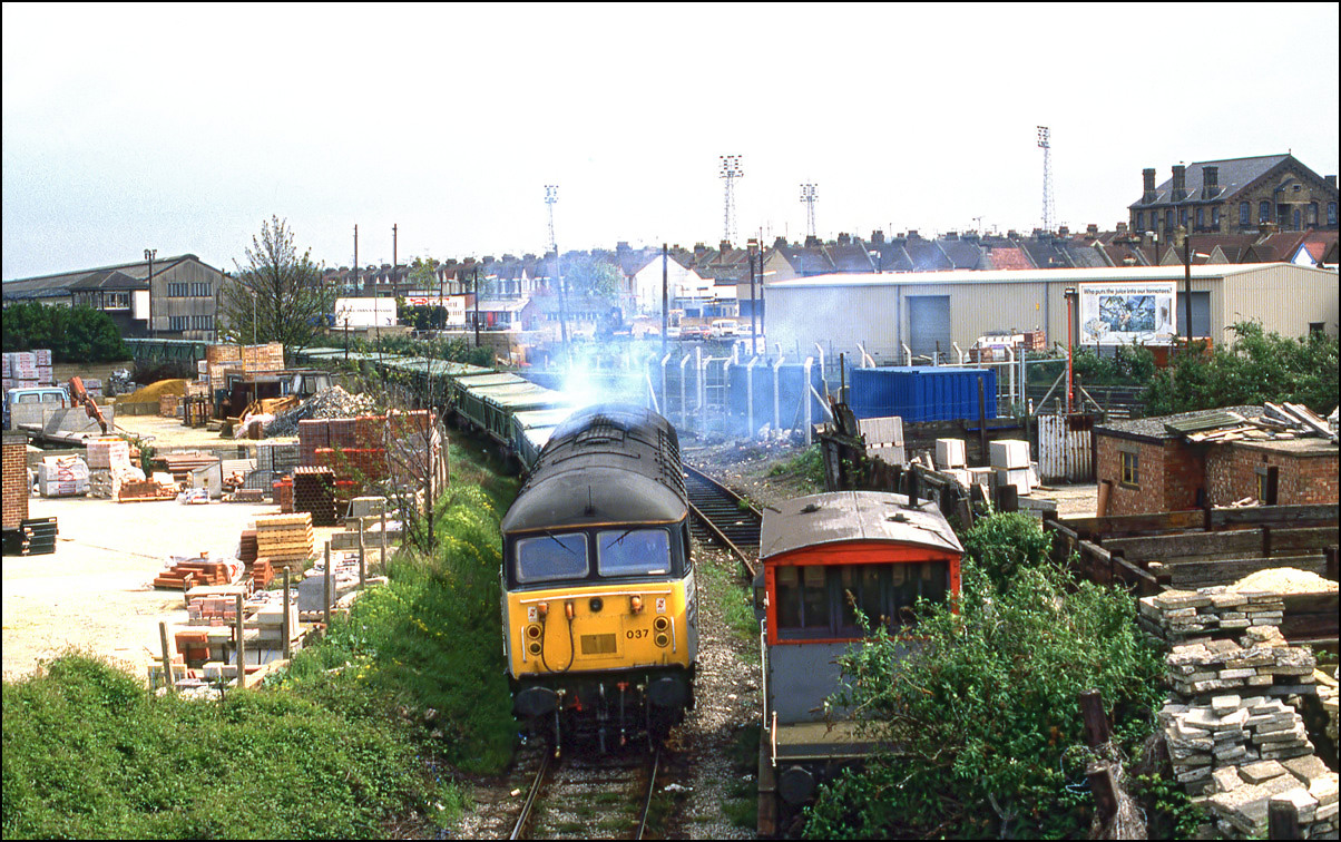 and this picture shows it working into the yard. The image is framed too well but I wanted to include the class 116 DMU and the class 37 on the shed.