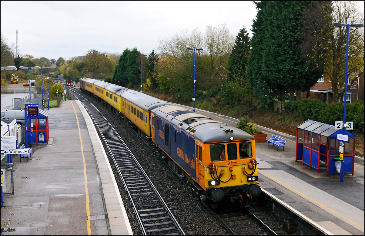 After returning home from organ playing duties on Sunday 6 November 2016 I found on my 'phone a message from a friend saying that 73962 + 73965 were to top and tail a 1Z13 Woking to Derby test train, 1Z13, via Oxford and Hatton rather than the more usual