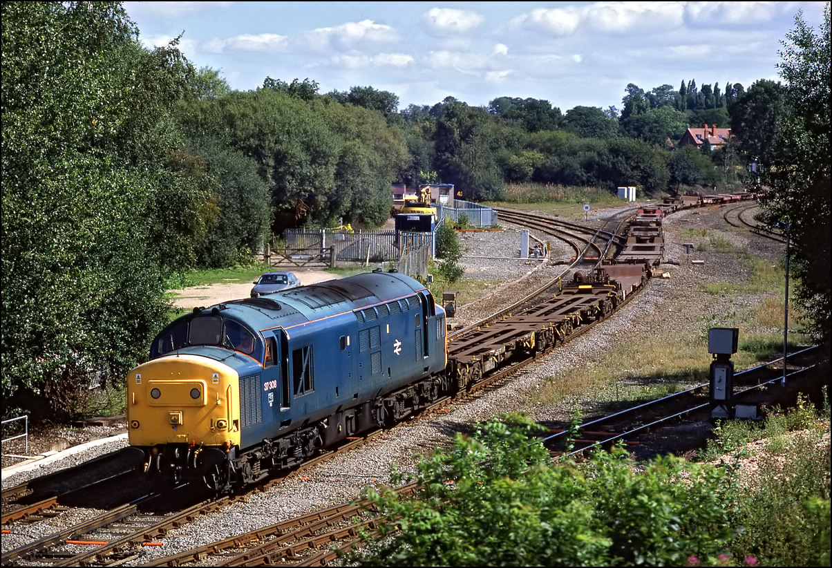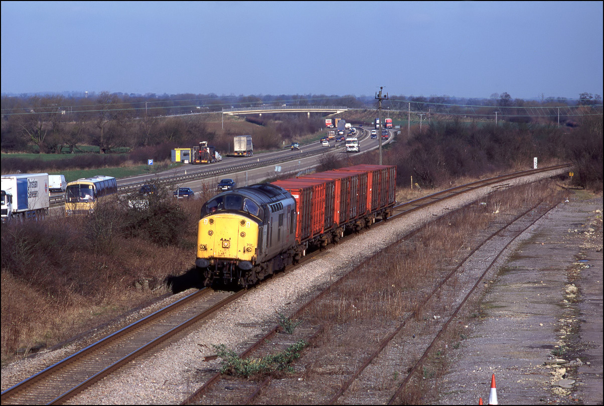This picture shows 37701 heading towards Didcot, the then hub for MOD traffic from Bicester, Kineton, Ludgershall and other locations on the former Southern Region. The train didn't run every day and loadings were variable, ranging from nothing
