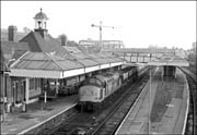 as it approached the station. By the time I reached Bicester some cloud had arrived but this wasn't a problem as the train was stationary when the shutter was pressed. The train crossed over to the siding, formerly the up line, at the pointwork in the background and was then