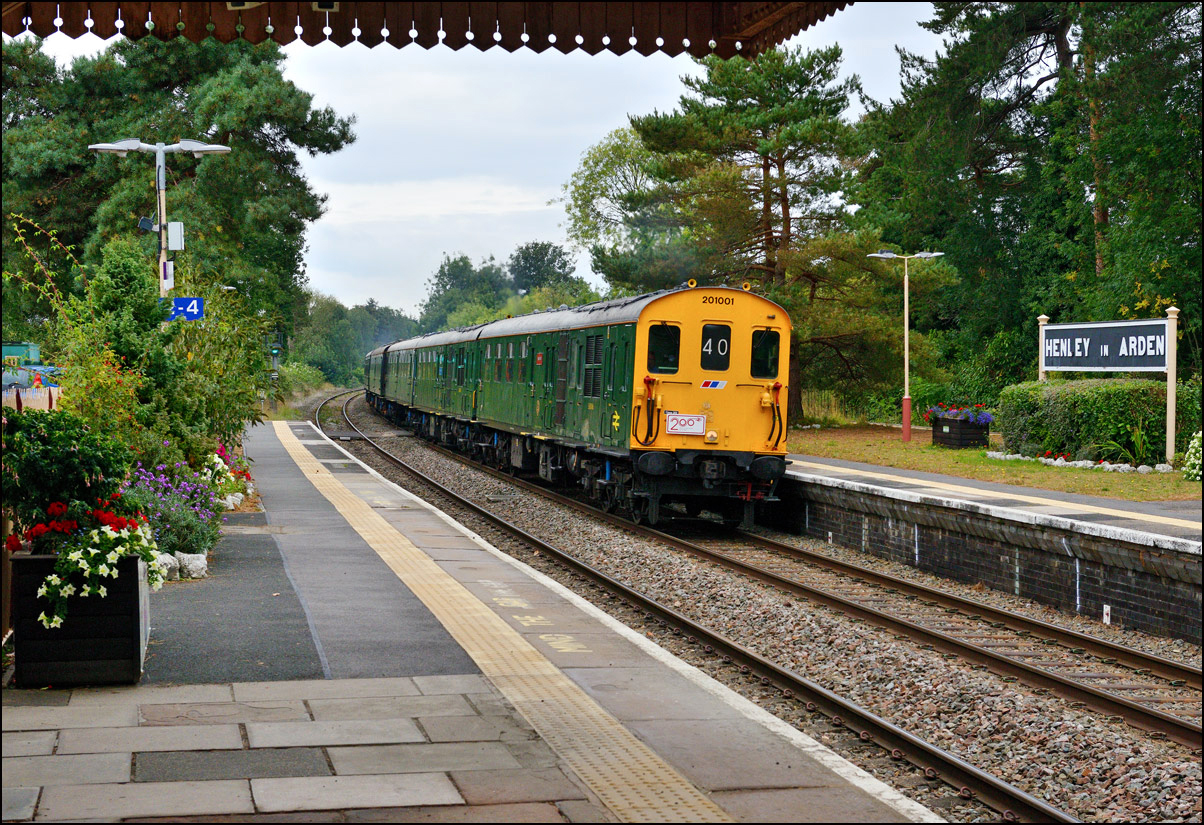 The Hastings DEMU didn't spend long at Stratford-upon-Avon on 20 Septemner 2025; just long enough for those passengers to be dropped off to visit the town. There was time to drive to Hanley-in-Arden for a shot of 1Z40 as it headed to Birmingham Moor Street and with the flower tubs and refurbished running-in board it made for an attractive scene even in the very dull weather. It was no better for an earlier visit by 1001 on 8 March 1997 when there had been no chance of a colour shot but digital equipment makes it easy for a decent image in such conditions. In fact, none of today's pictures would have possible had it been a sunny day. |
