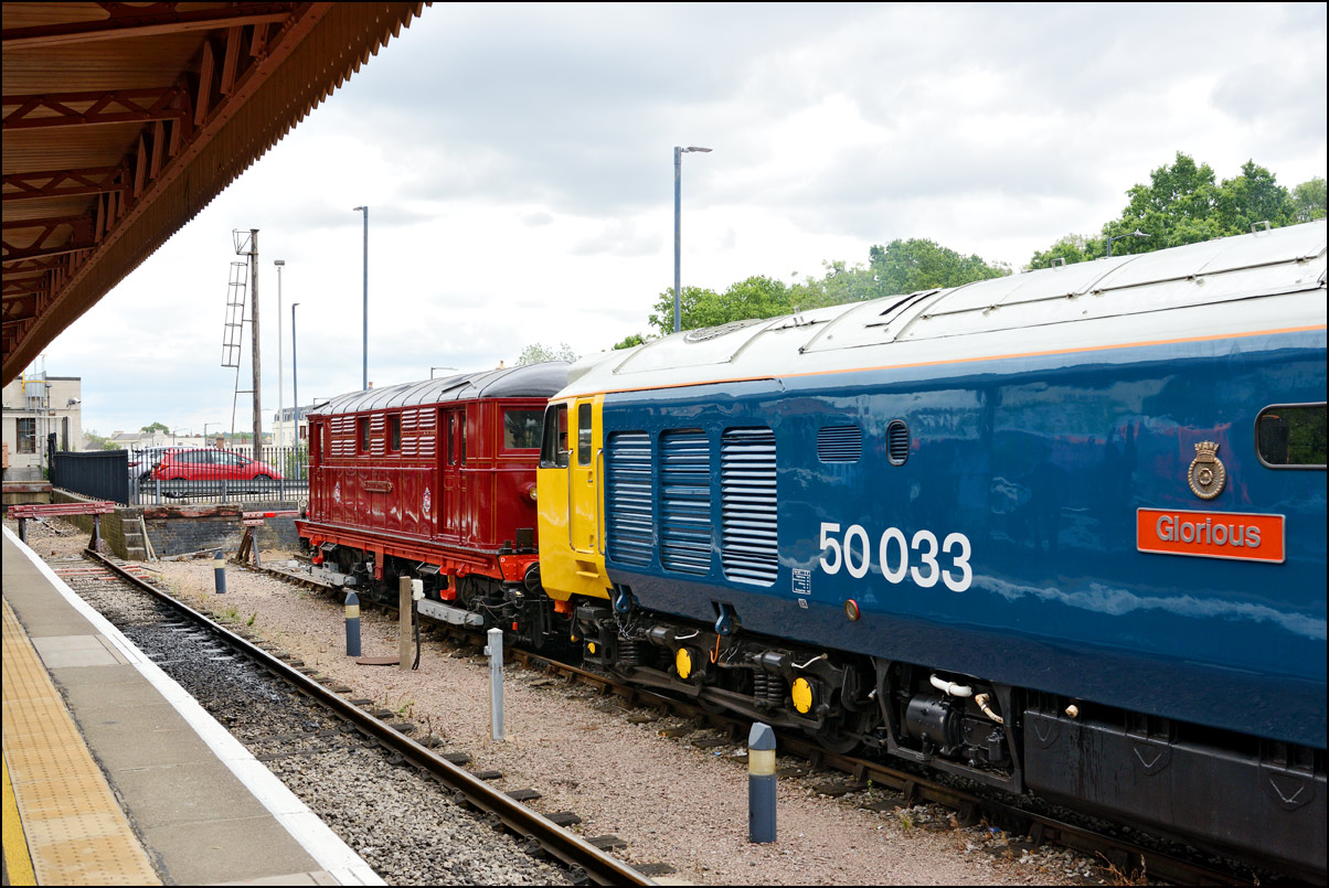 Given the rarity of any locomotive using the DMU siding at Leamington Spa I made sure to take one of 46035 on 30 July 2025 and the unusual sight of a class 50 coupled to a 100 year old electric locomotive. |