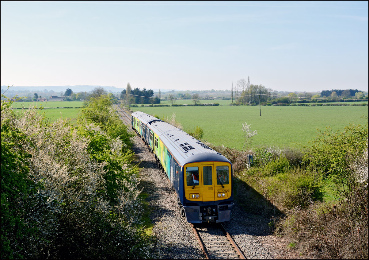 The run from the Staff Hut to the red signal protecting Honeybourne North Junction didn't take long but because of the unchecked lineside growth I had to change to a wide angle lens for even a head-on shot. The class 701s which seemed to have caused the late running are 701509 and 701512. |