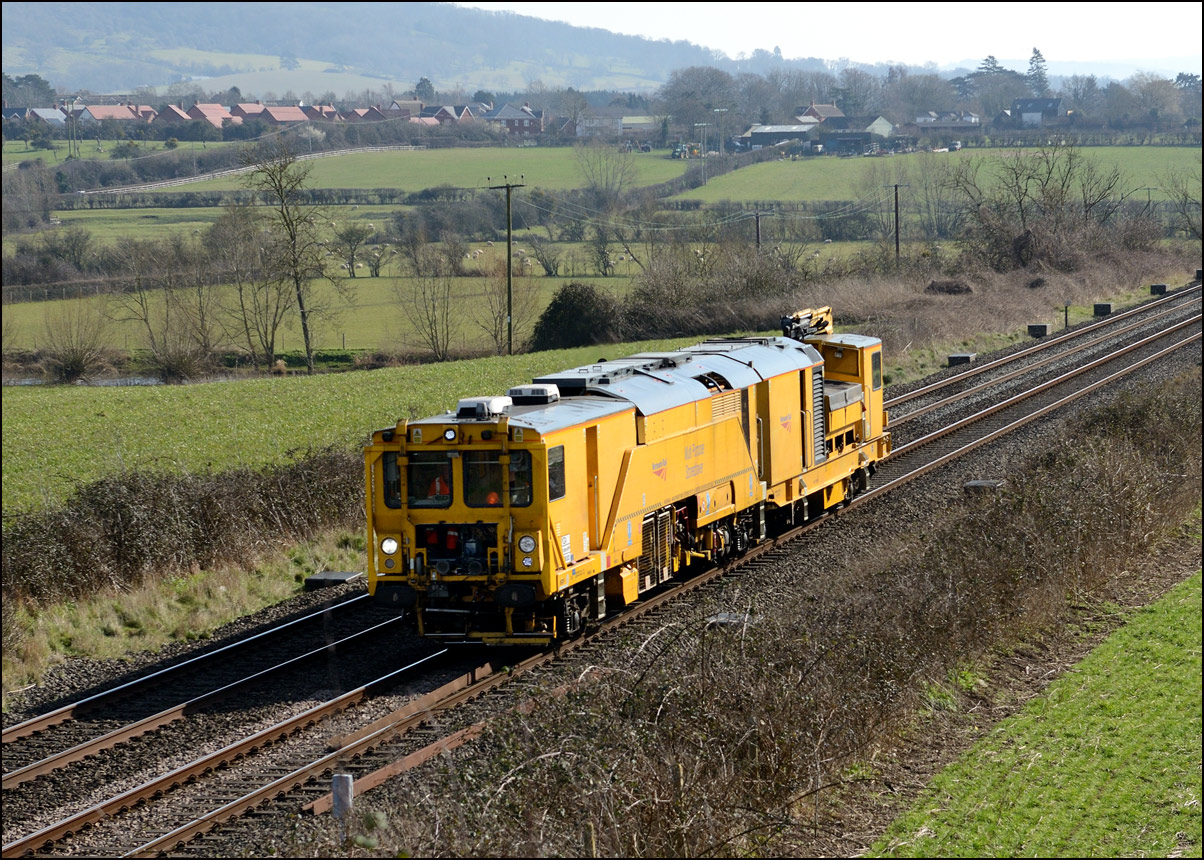 I had just arrived at Defford on 4 March 2025 when the front light of this becamse visible in the distance as it left Eckington Loop. It wasn't booked to use the loop but runnng 10 minutes meant that it was put inside to allow a CrossCountry train to pass. It was running as 6U42, the 12.55 Gloucester Horton Road to Trent Sidings but I don't have any idea about what sort of OTP it is. There was no visible number and the faded lettering on the side looks something like "Multi-Purpose Shredder" but this seems unlikely to be the case. Whatever, OTP has an interest of itd own and I usually have a shot of one when possible. |