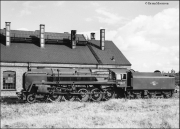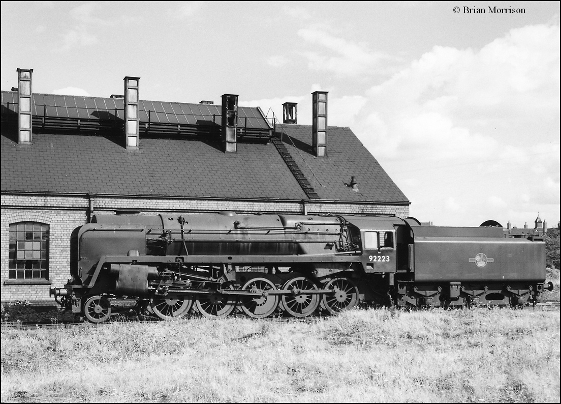 Stratford-upon-Avon's locomotive shed, 84E, was a sub-shed of Tyseley. It was situated on the down side of the main line from which it had no direct connection. Access to the shed involved several reversal moves and must have been the bane of the crews' lives. There was no turntable at Stratford because of the existence of triangular junctions both at Old Town and Bearley, although the latter was the more frequently used. This photograph shpws 9F 92223 dead outside the shed on 16 August 1958. The presence of such a large engine here was unusual and I imagine that its presence was due to a failure of some sort. Plans currently exist locally for a new steam servicing and visitor facility to be built on roughly the site of the original to relieve some of the pressure from Tyseley and to enable the servicing of visiting locomotives. There are certain problems around vehicular access and egress to and from the site and the proposal may require its plans to be re-drawn to allow completion of the scheme. Brian Morrison |