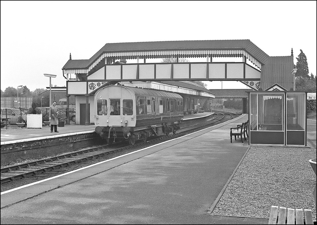 The line to the south of Stratford-upon-Avon was blessed with only one overbridge between the station and Long Marston, excluding where the Stratford-upon-Avon and Midland Junction Railway (SMJ) line crossed the GWR. The bridge was that carrying Sanctus Road, formerly Sancta Lane, near the site of the first station to reach the town from the south. This photograph of a three car Western Region suburban DMU forming the 6.03pm Stratford to Honeybourne was taken from this bridge on 23 May 1964. Most of the main line expresses had been diverted away from the line by this time but the local services continued as did both diverted passenger and freight trains. Clearly visible in the background is the 1960-built signalbox, protecting the Evesham Road level crossing. This new box also controlled the recently installed but soon-to-close curve from the SMJ used by freight services from the junction at Fenny Compton. I wonder if the guard is standing up to change the destination blind to the correct setting? Michael Mensing |