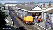 There have always been occasional excursions to Stratford for no other reason than to allow passengers to enjoy the historical aspects of the town or to simply enjoy a walk along the River Avon. This train, headed by 37418, came from Cardiff on 19 March 1994 and was organised by Regonal Railways. This day was notable in that a long-serving member of the station staff, Aubrey Wheeler, retired at the end of the afternoon shift and I was lucky enough to be invited into the staff room for a drink and to witness Aubrey's presentation by the Area Manager. I took advantage of the quiet spell outside to nip across the tracks and take this shot of the train standing on platform 3. Since then, the siding in the foreground has been lifted, this being done when the station area was resignalled. |
