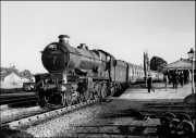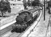 Turning around from the photograph of Sweeney Hall at the top of the section, this shot saw 4980 Wrottesley Hall approaching the station with the 10.35 Paignton to Wolverhampton train on 16 August 1958. Stratford's prairie tank 5163 has reversed out of the headshunt adjacent to the East signalbox and once the Halls's train has cleared the pointwork it will buffer up to the rear coach and bank it to Wilmcote. Thos area just south of the station was locally known as "The Cutting" and several footpaths straddled the line, all of which were regularly blocked when a long freight was held outside the station or made to reverse into the refuge siding. It was not unknown for impatient walkers to literally risk life and limb by attempting to cross the line by clambering between wagons. Brian Morrison |