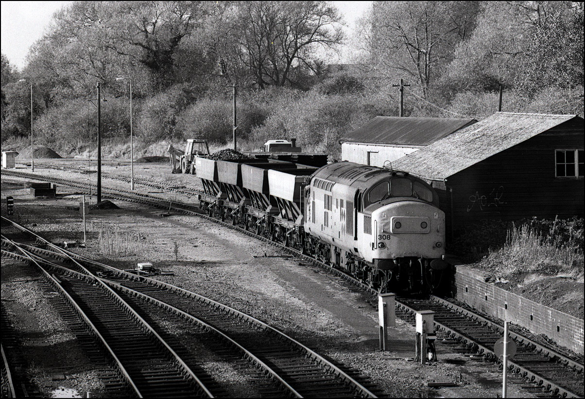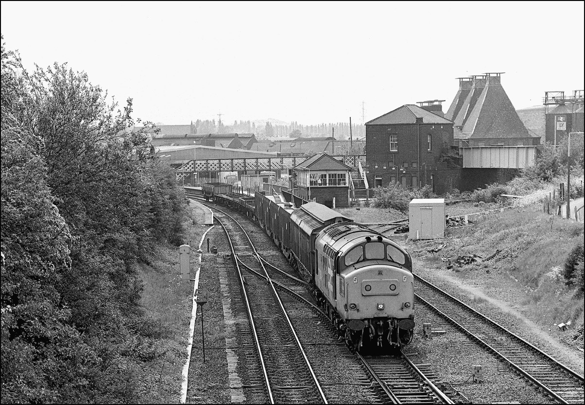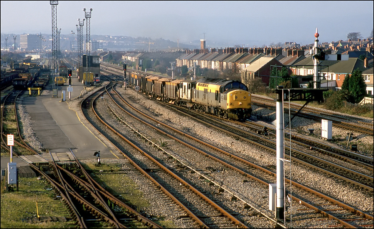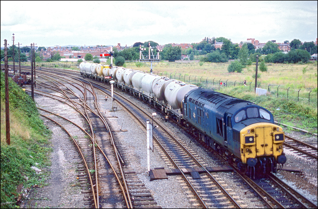 A reminder of the times when many local station yards had a freight service. This is 37205 (I think) sometime in 1985 or 1986 entering the yard at Worcester Shrub Hill with three