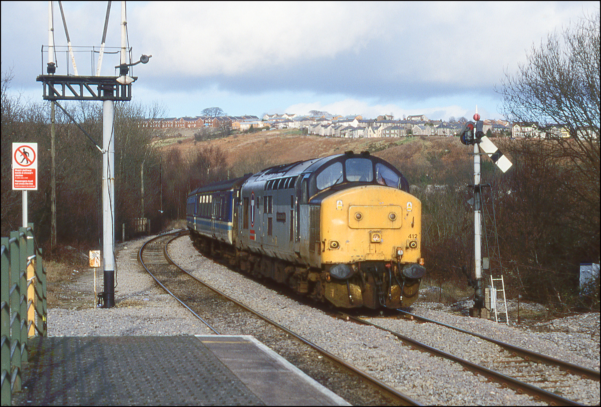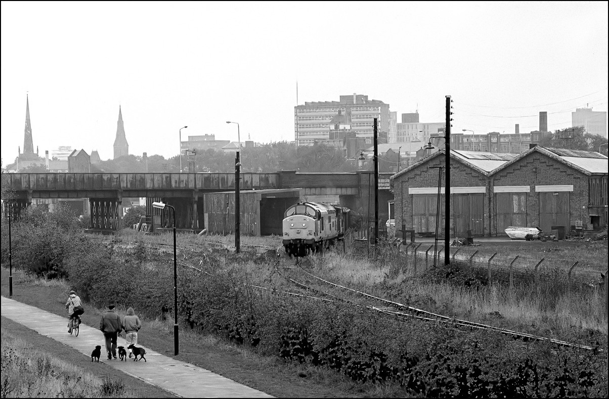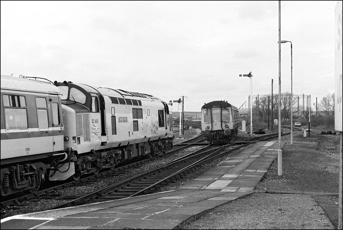 A reminder of the times when many local station yards had a freight service. This is 37205 (I think) sometime in 1985 or 1986 entering the yard at Worcester Shrub Hill with three
