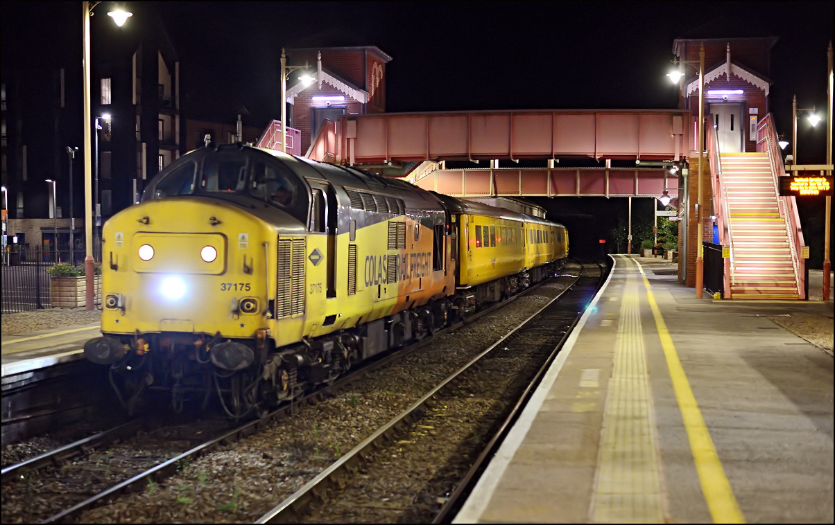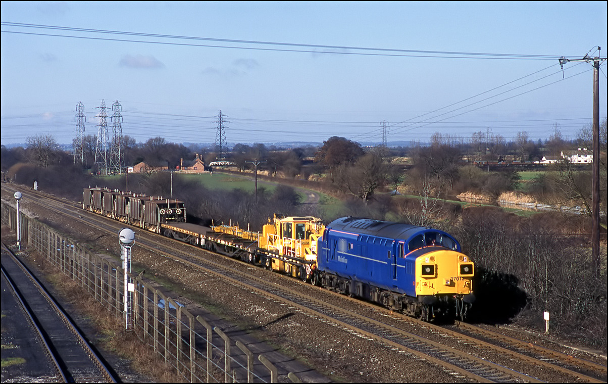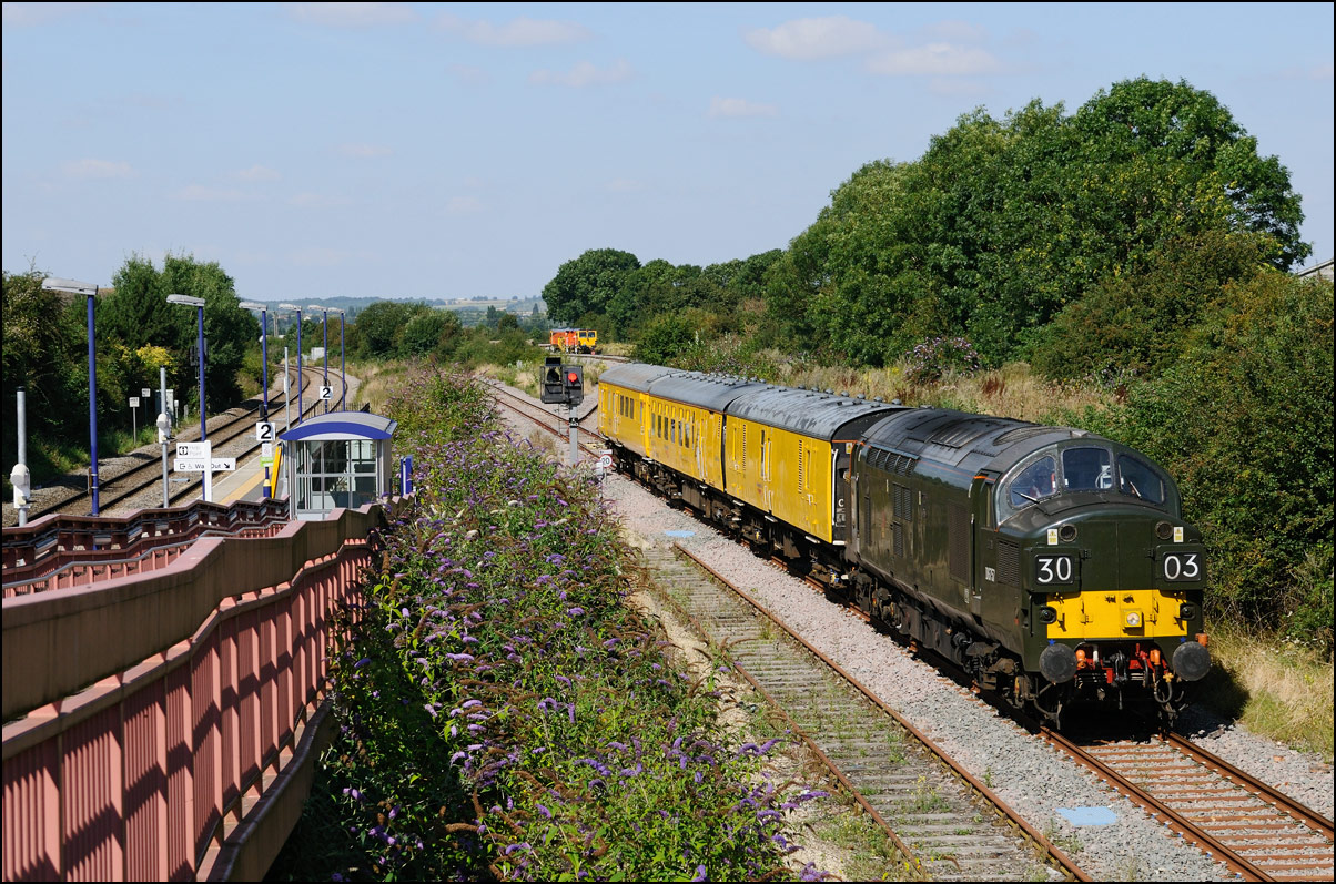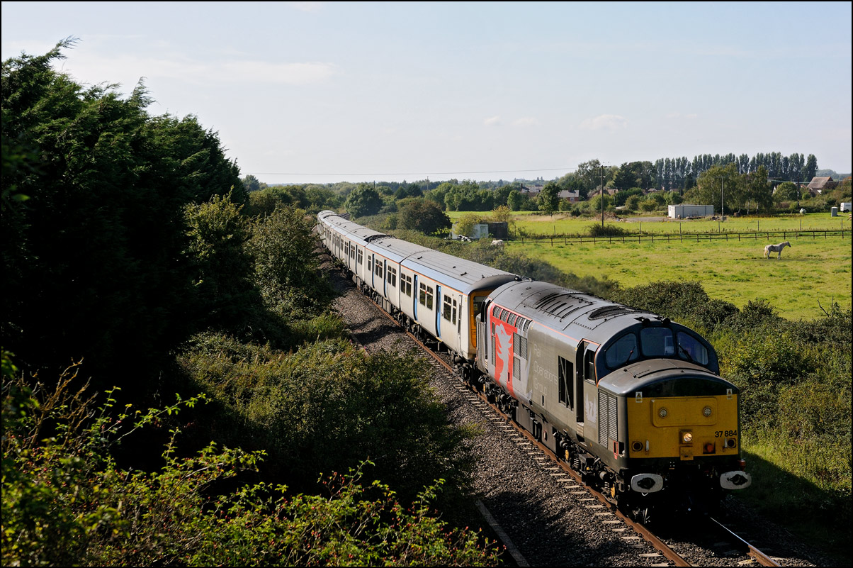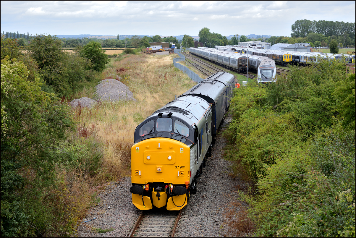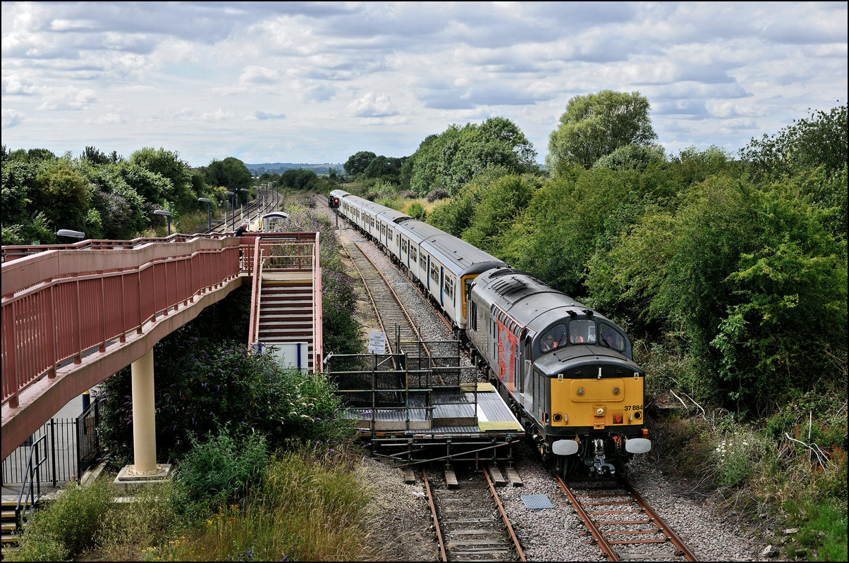 that more movement than expected was taking place and sure enough, I soon heard a toot from the area of Hatton station and then the sound of class 37s accelerating towards me. What actually happened was that 1Q13 had run a short distance onto the Stratford