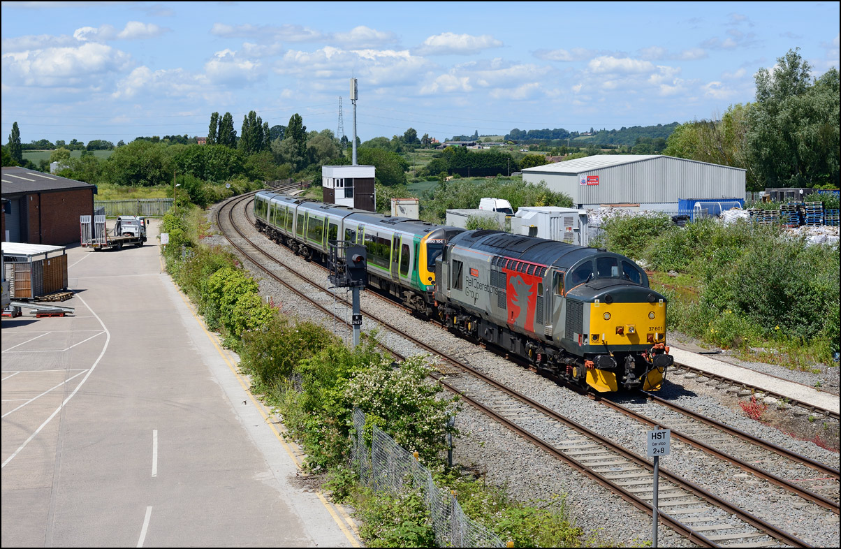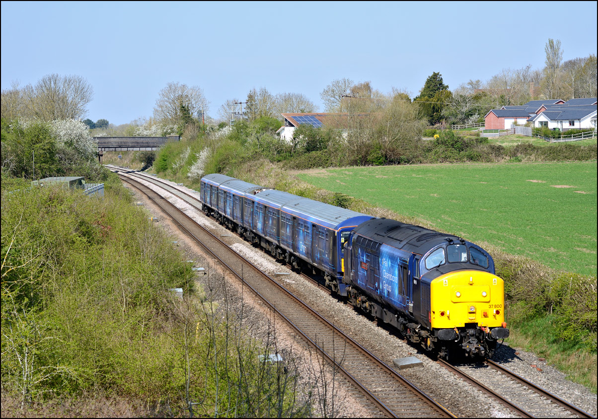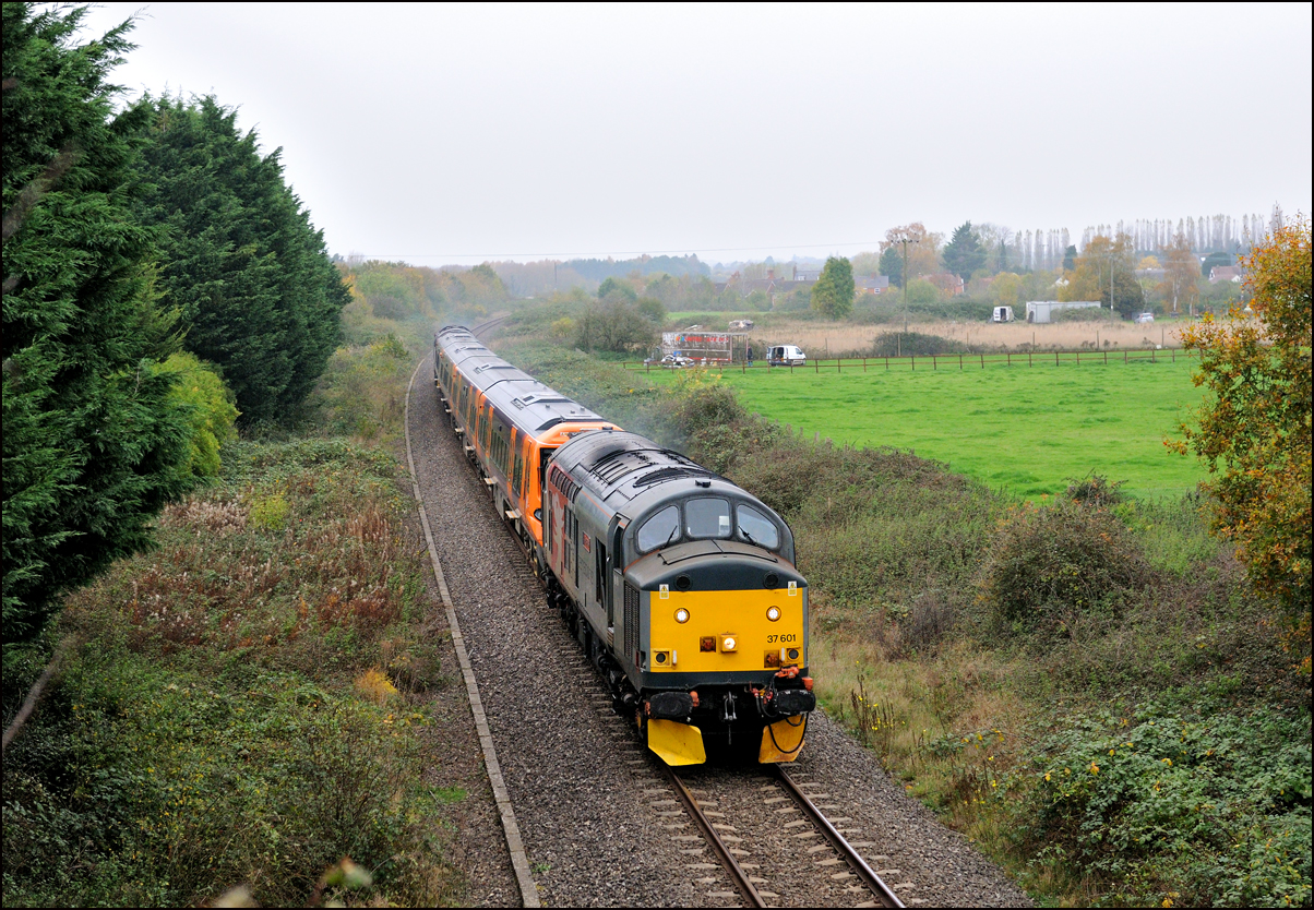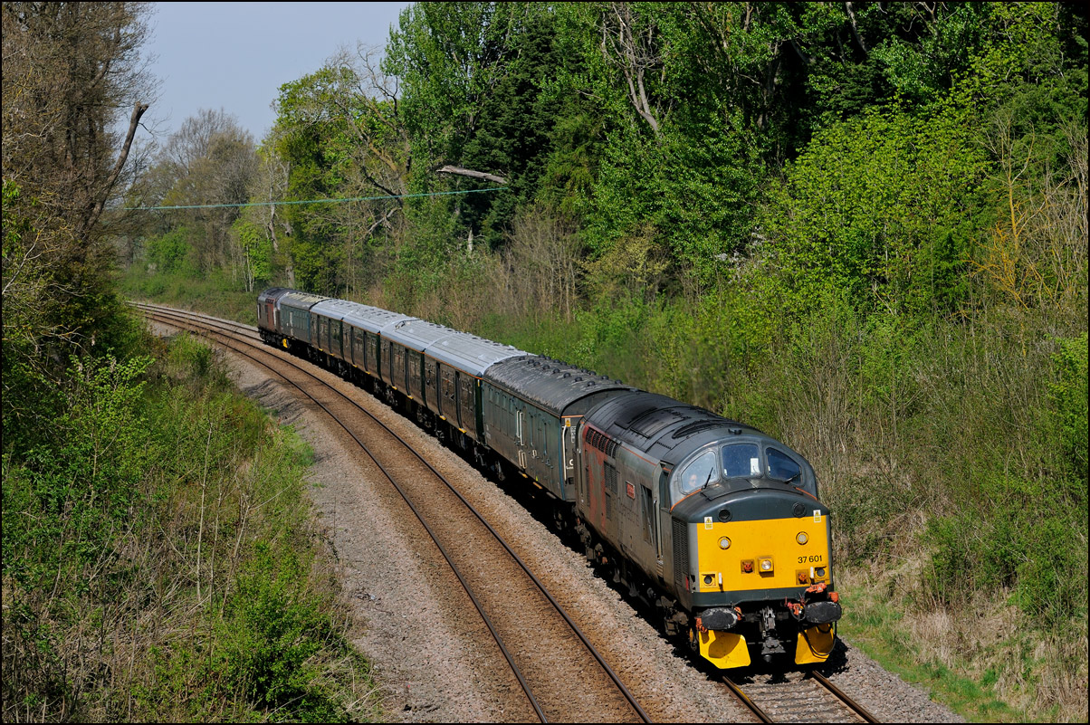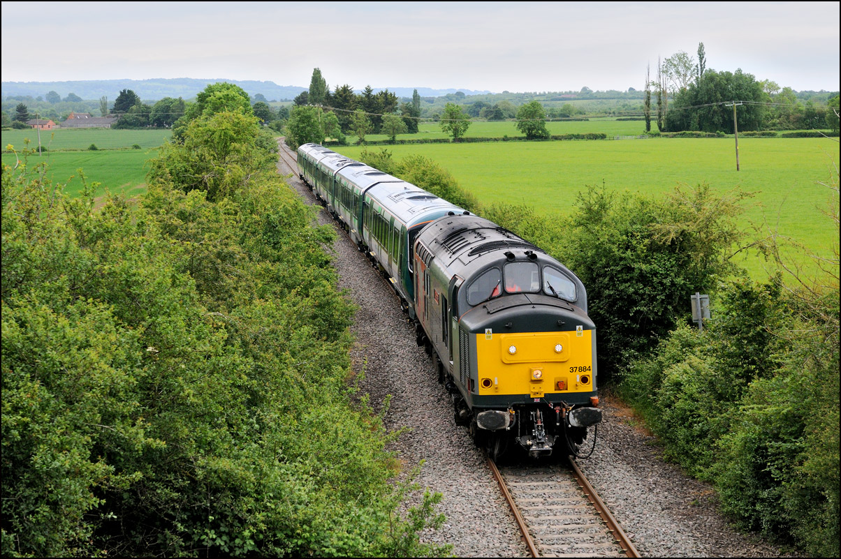Strangely for a class 37 job, I saw no postings until it reached Norton Junction, only about 10 minutes from where I was waiting, just north of Evesham station. The train appeared in the distance and absolutely