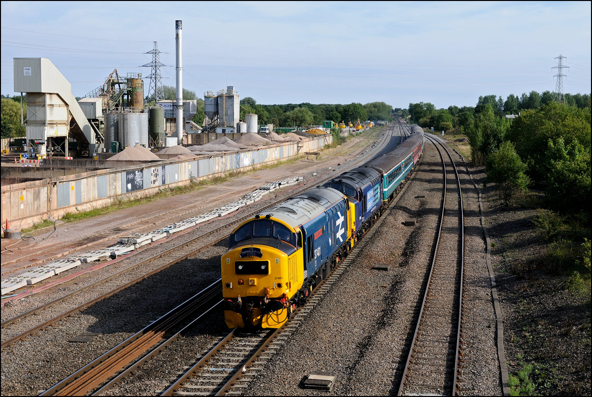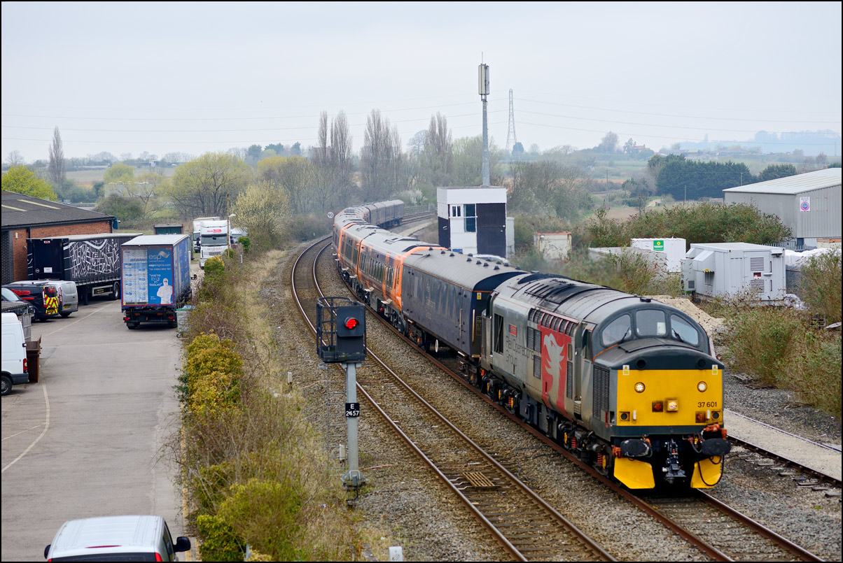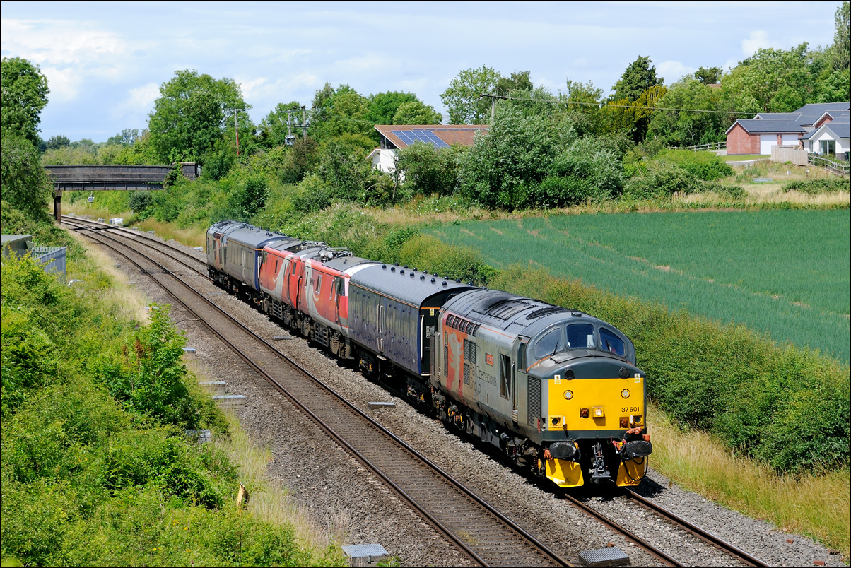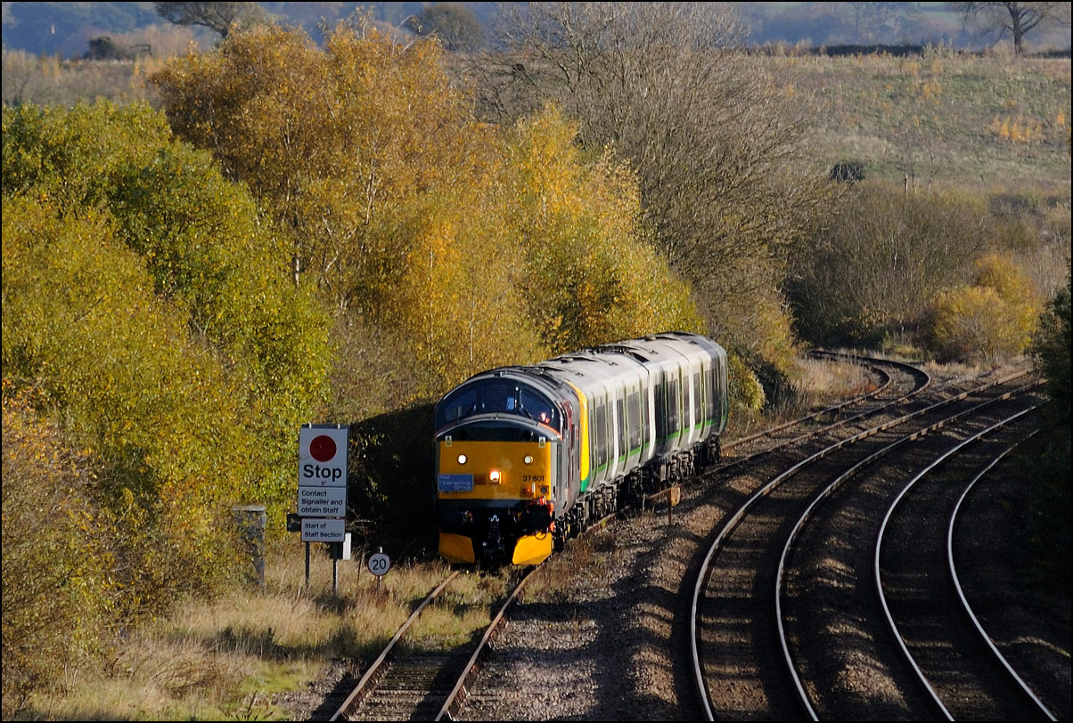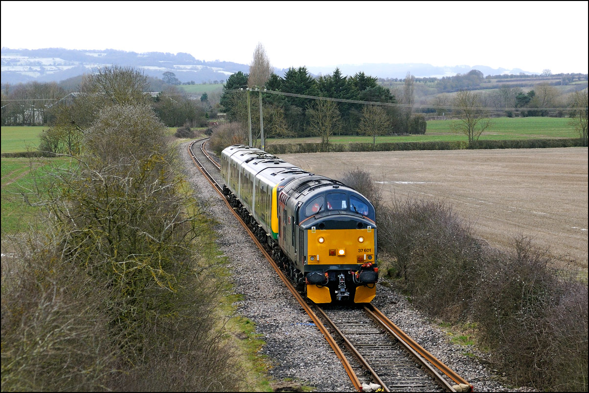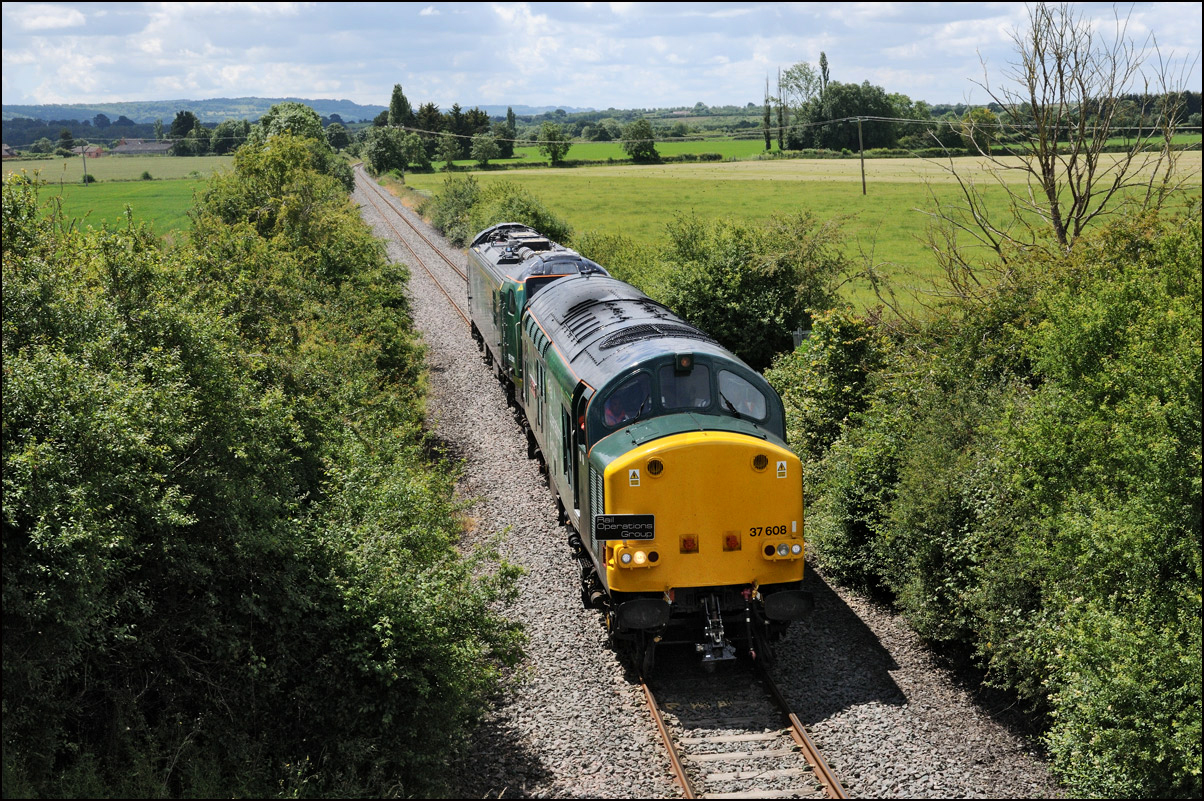 Strangely for a class 37 job, I saw no postings until it reached Norton Junction, only about 10 minutes from where I was waiting, just north of Evesham station. The train appeared in the distance and absolutely