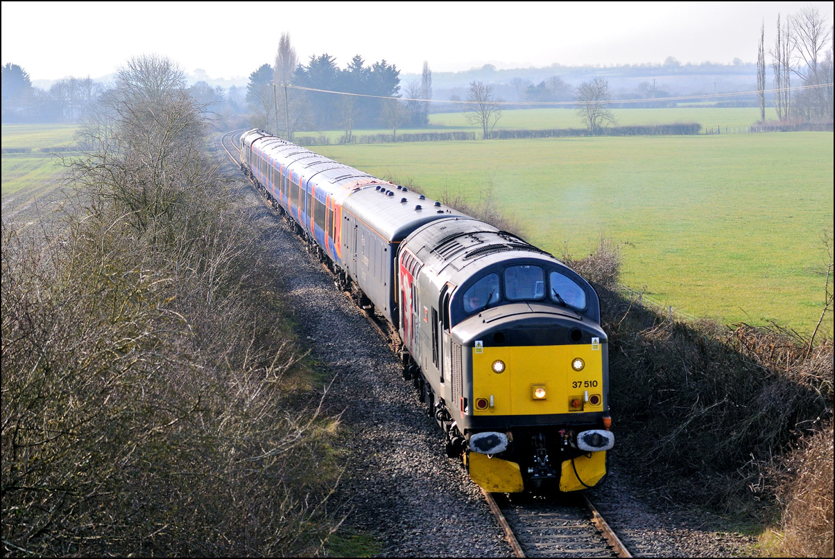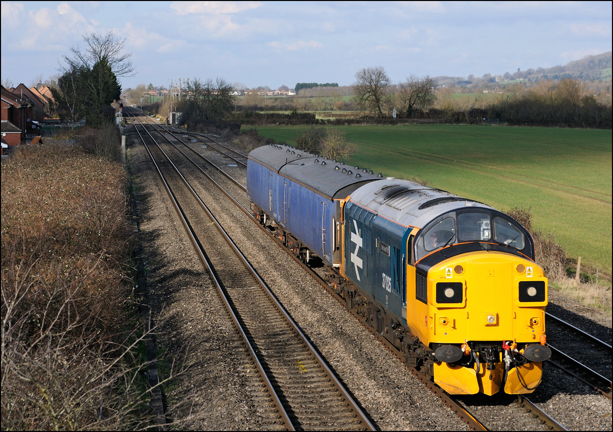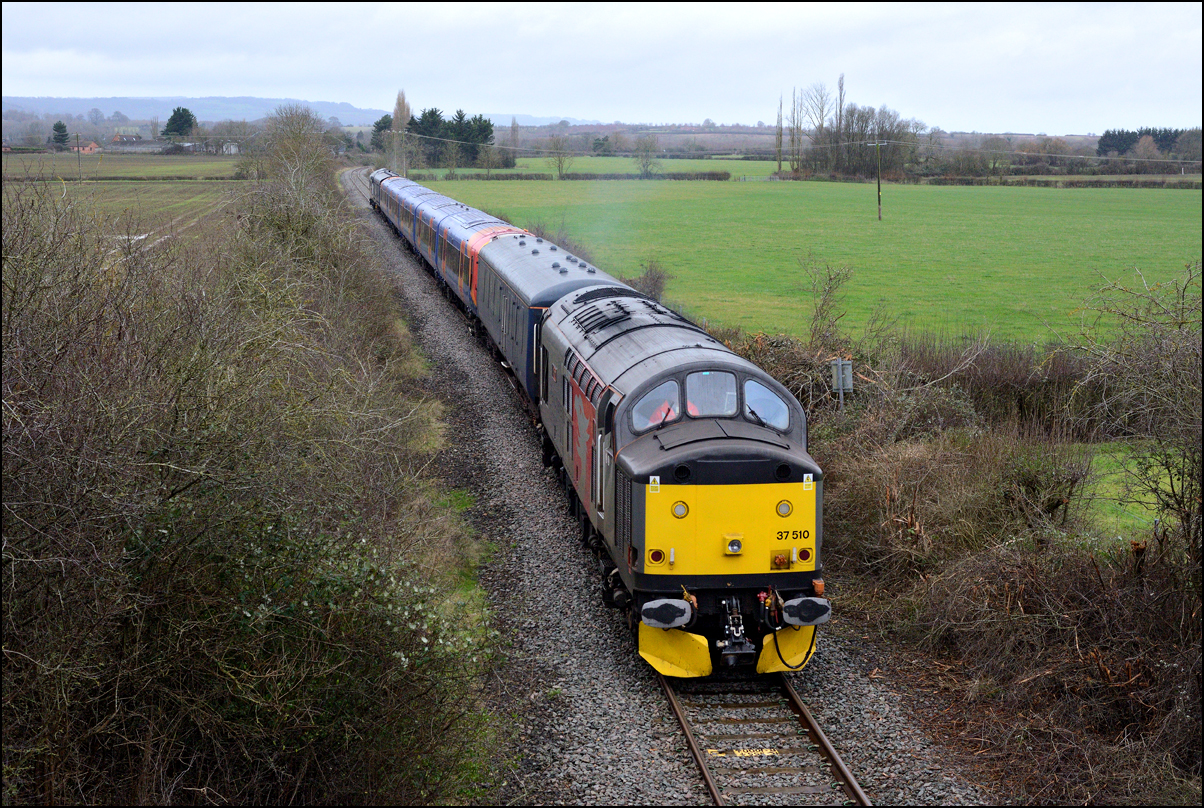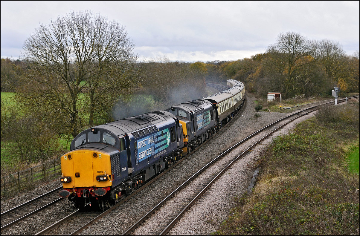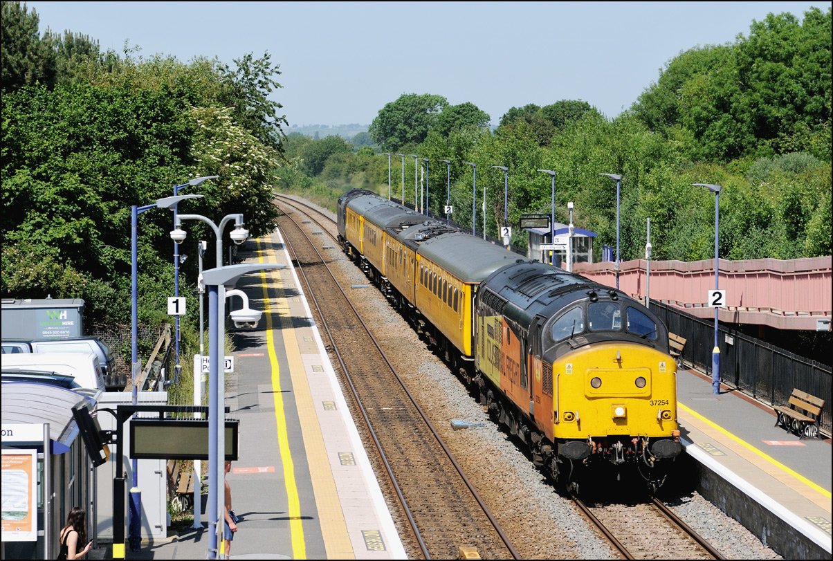 Strangely for a class 37 job, I saw no postings until it reached Norton Junction, only about 10 minutes from where I was waiting, just north of Evesham station. The train appeared in the distance and absolutely