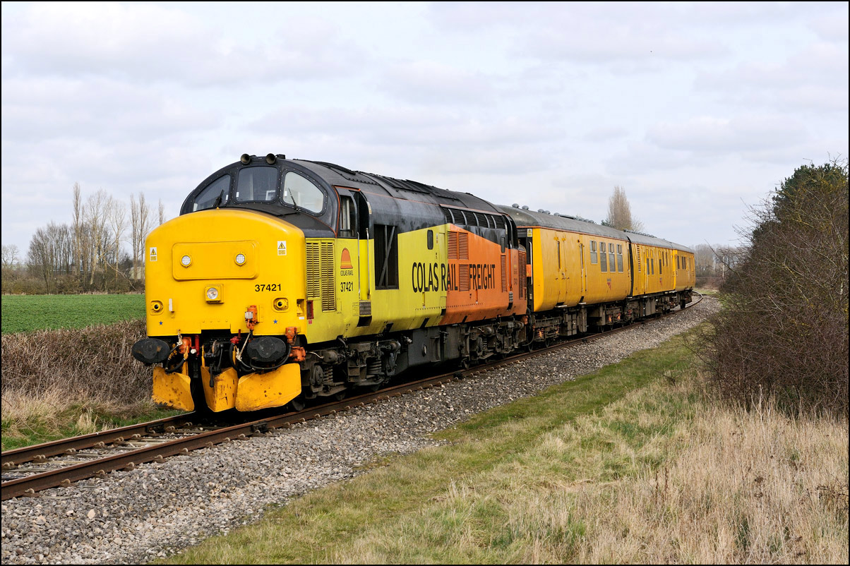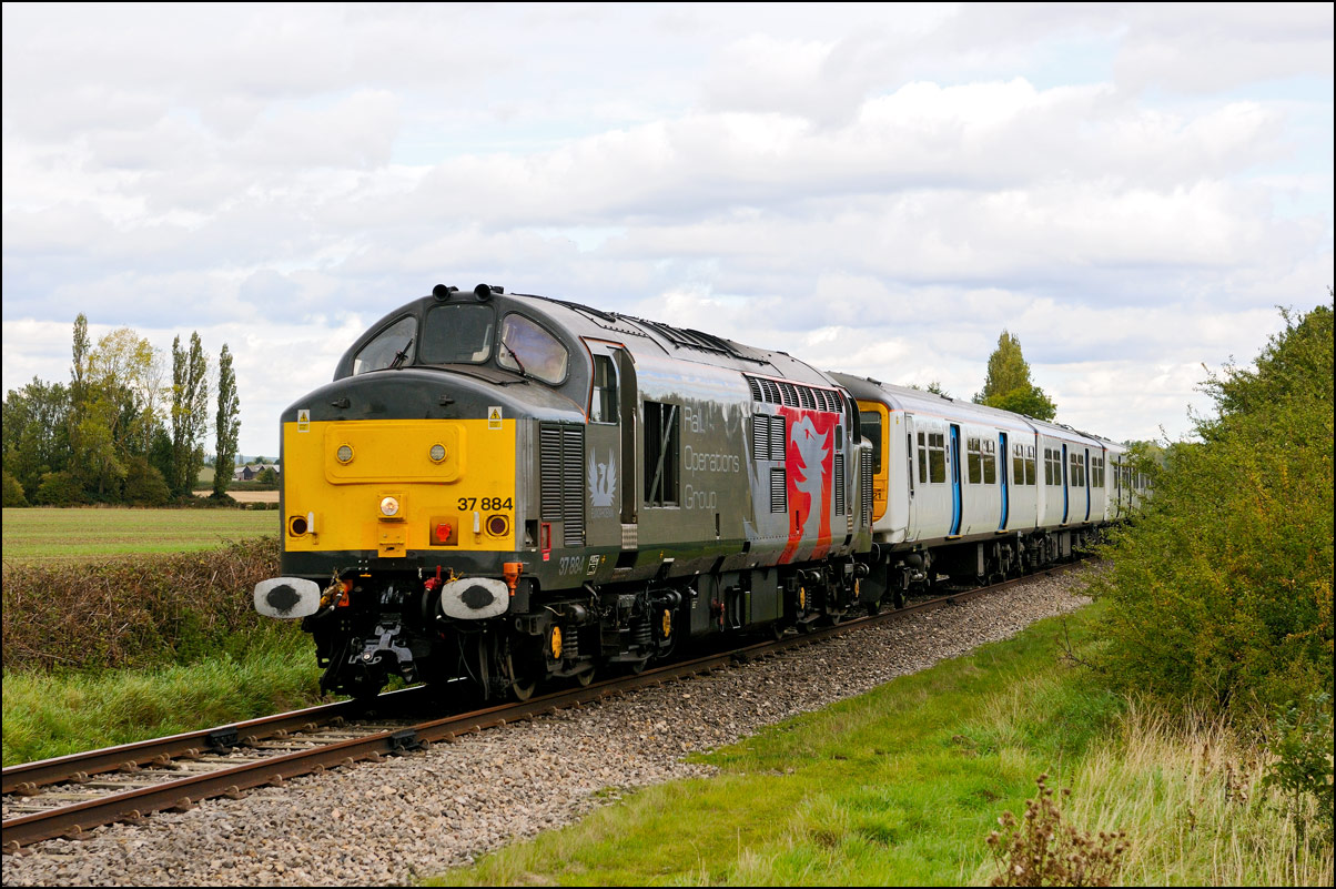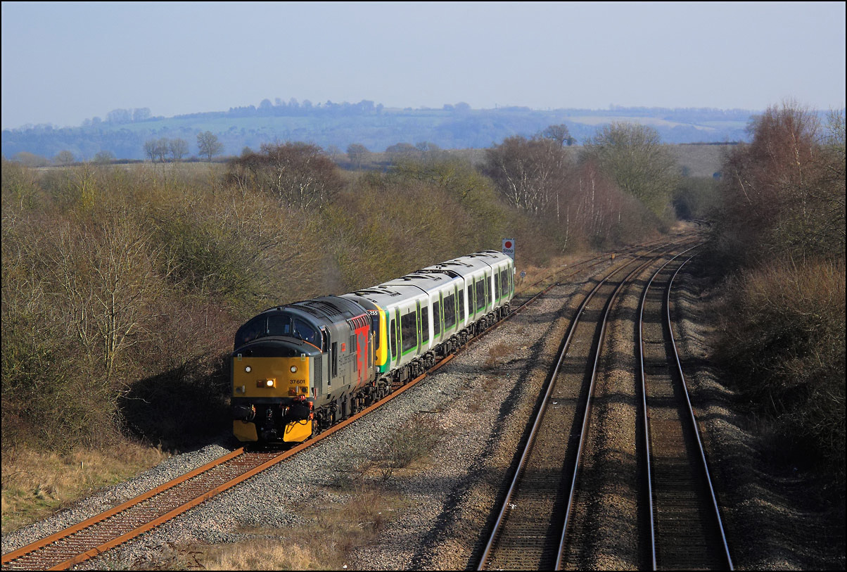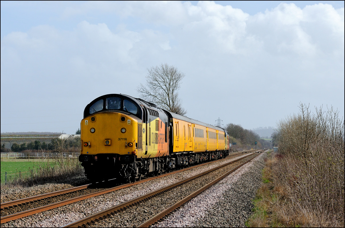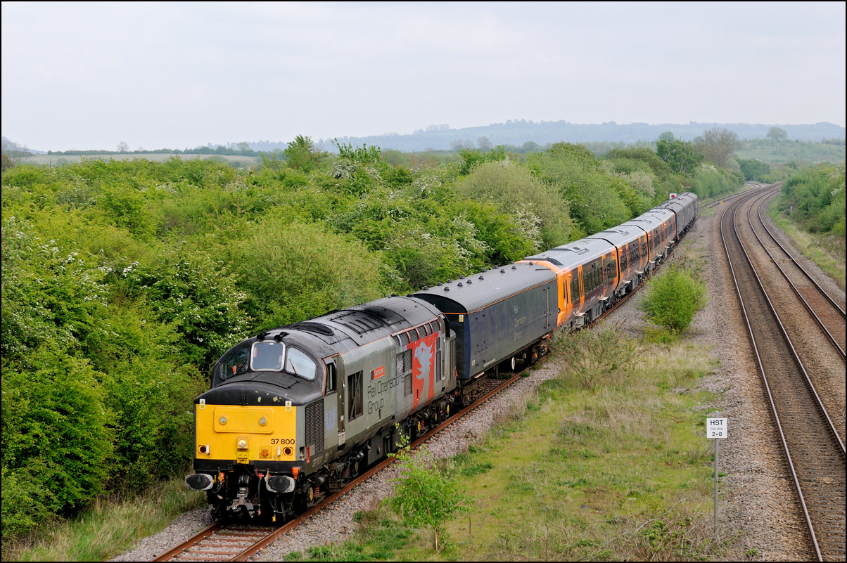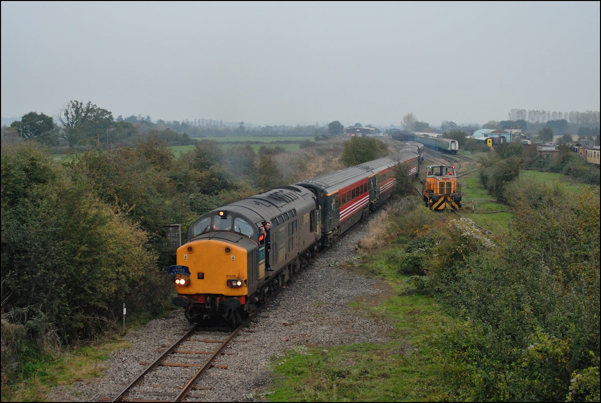 Strangely for a class 37 job, I saw no postings until it reached Norton Junction, only about 10 minutes from where I was waiting, just north of Evesham station. The train appeared in the distance and absolutely
