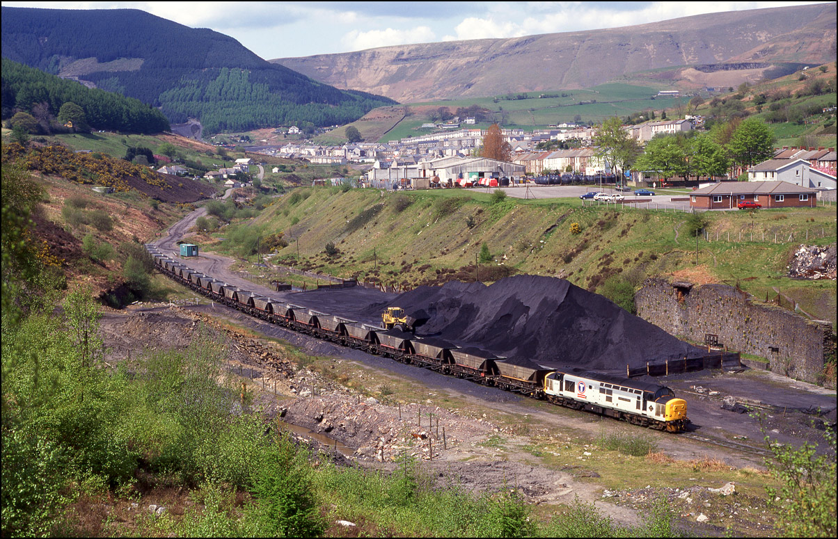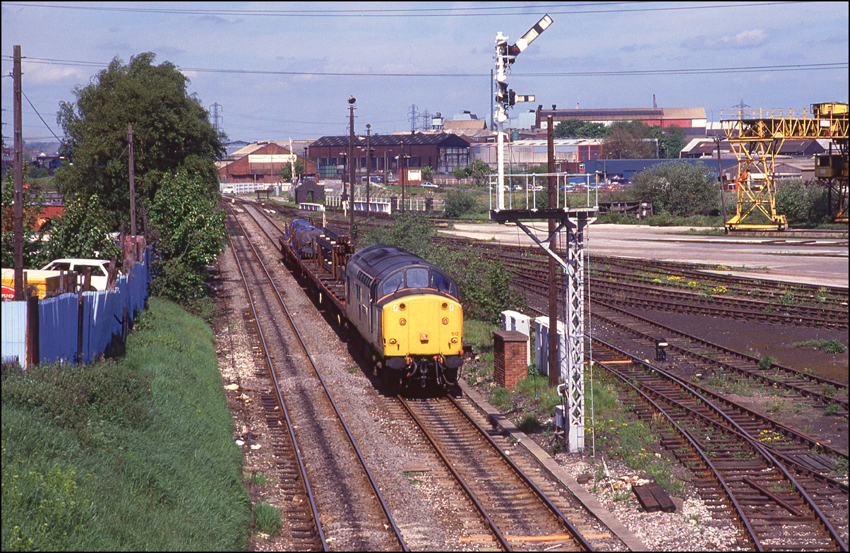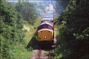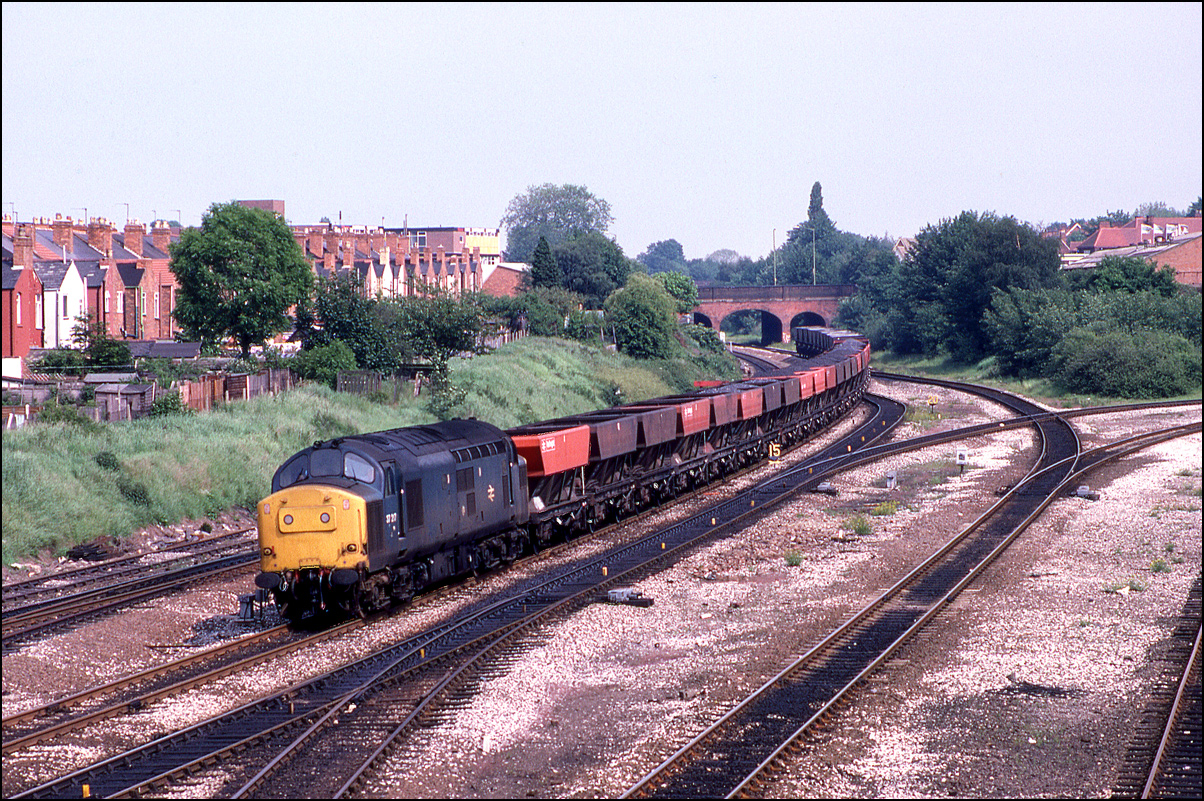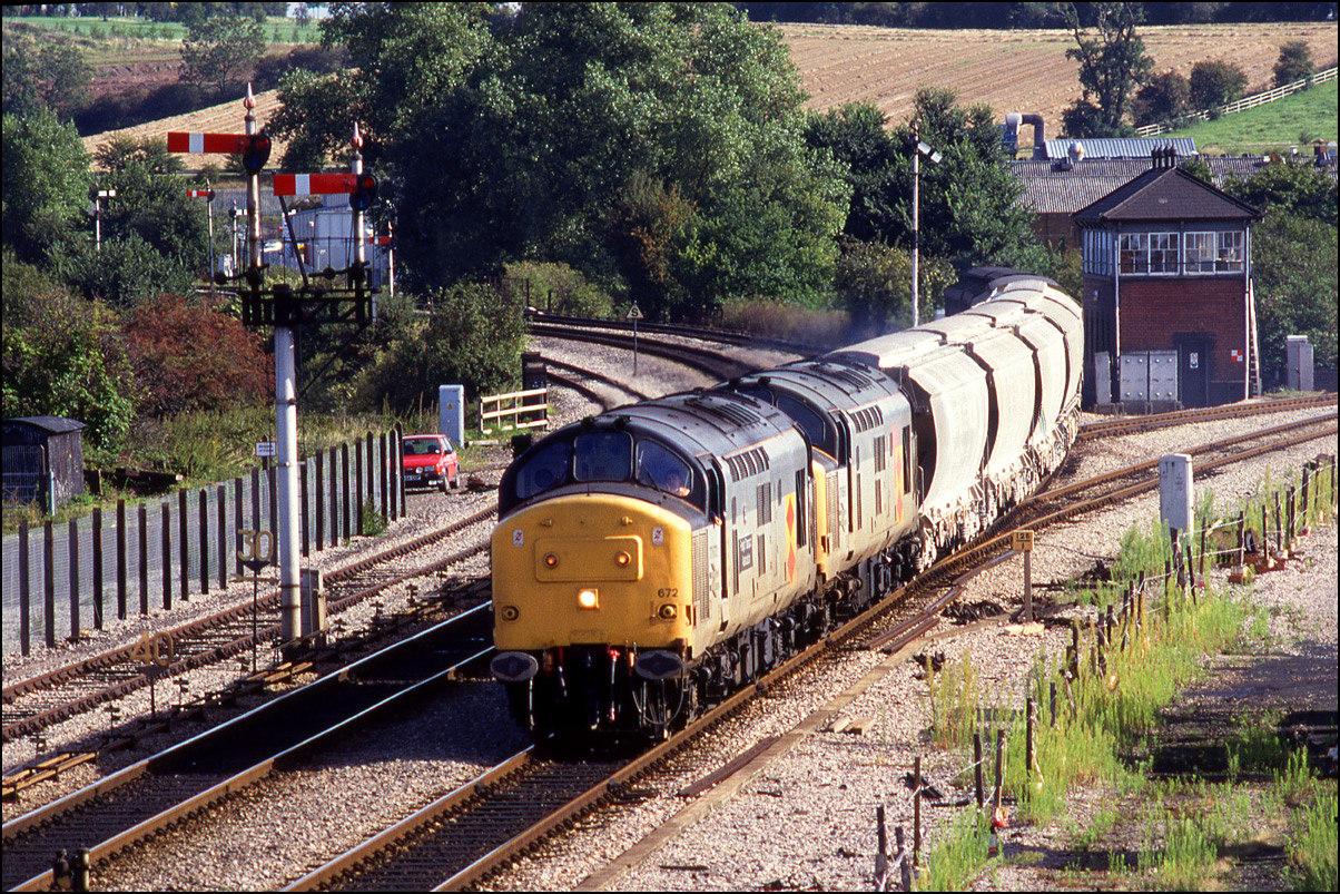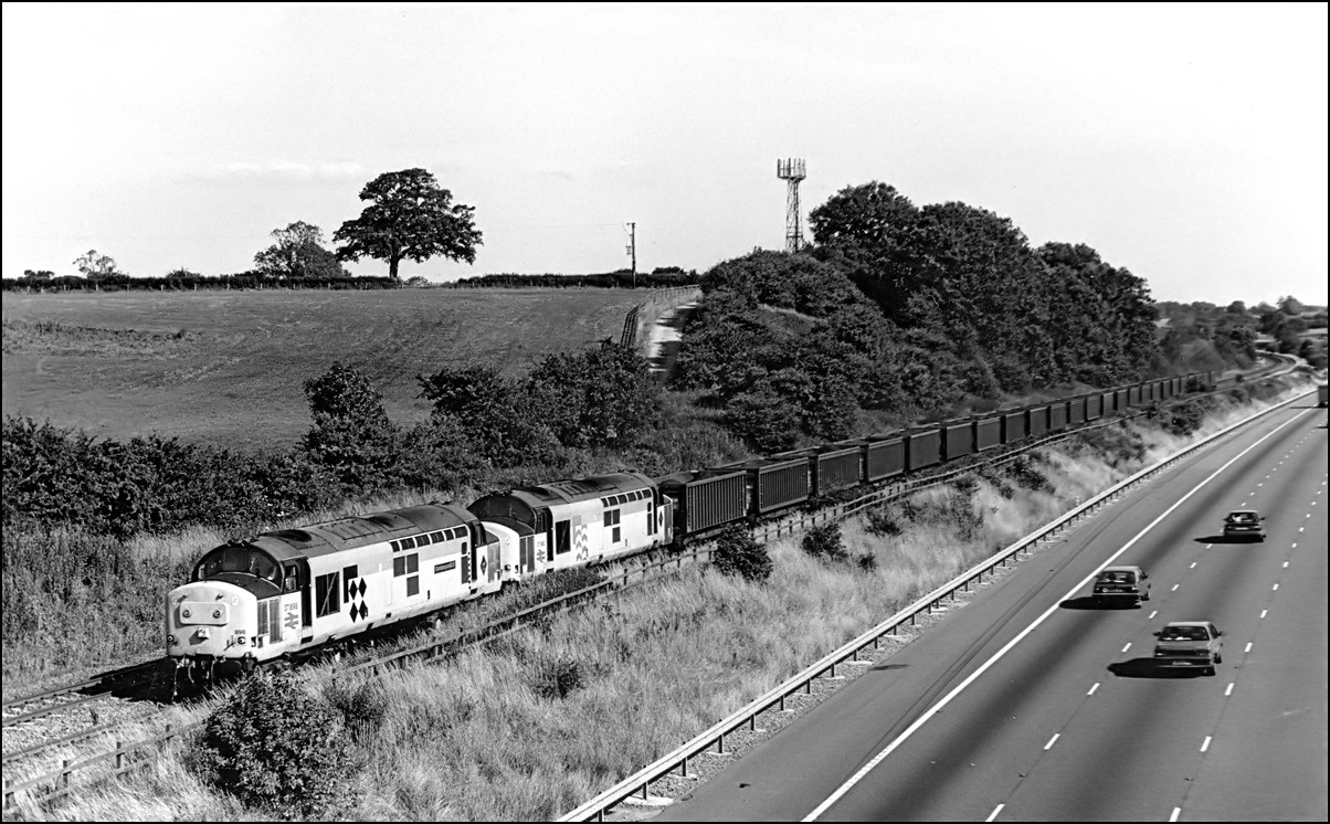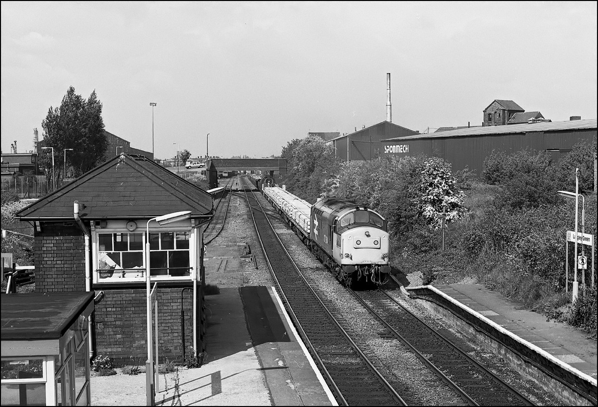 Here is one of the re-engined class 37/9 locomotives, 37902, at Whitacre Junction on 13 May 1992. The first section of the train was a rake of scrap wagons from March heading for Margam in South Wales.