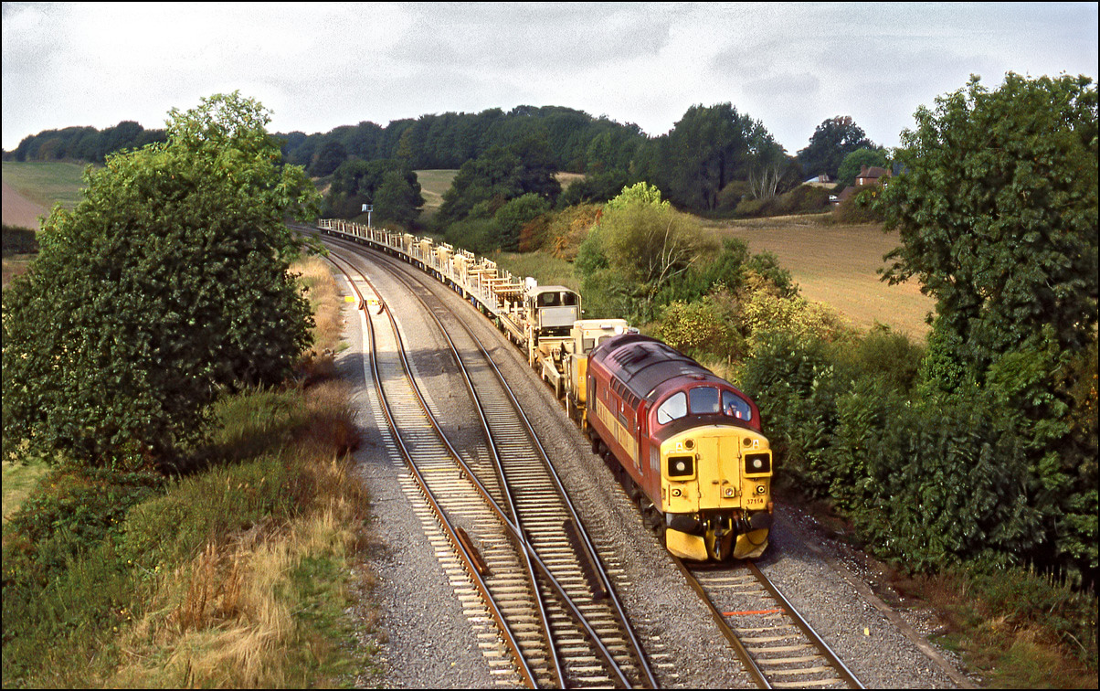 The memorable Basingstoke Open Day, held on 26 September 1987, included a couple of local railtours using motive power rare for the area, at least on passenger trains. 37116 was used on several trips and this one is seen during the afternoon at Worting Junction while returning from Andover.645