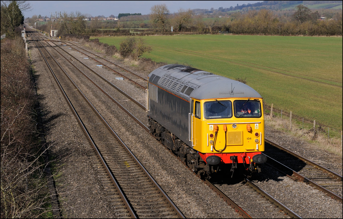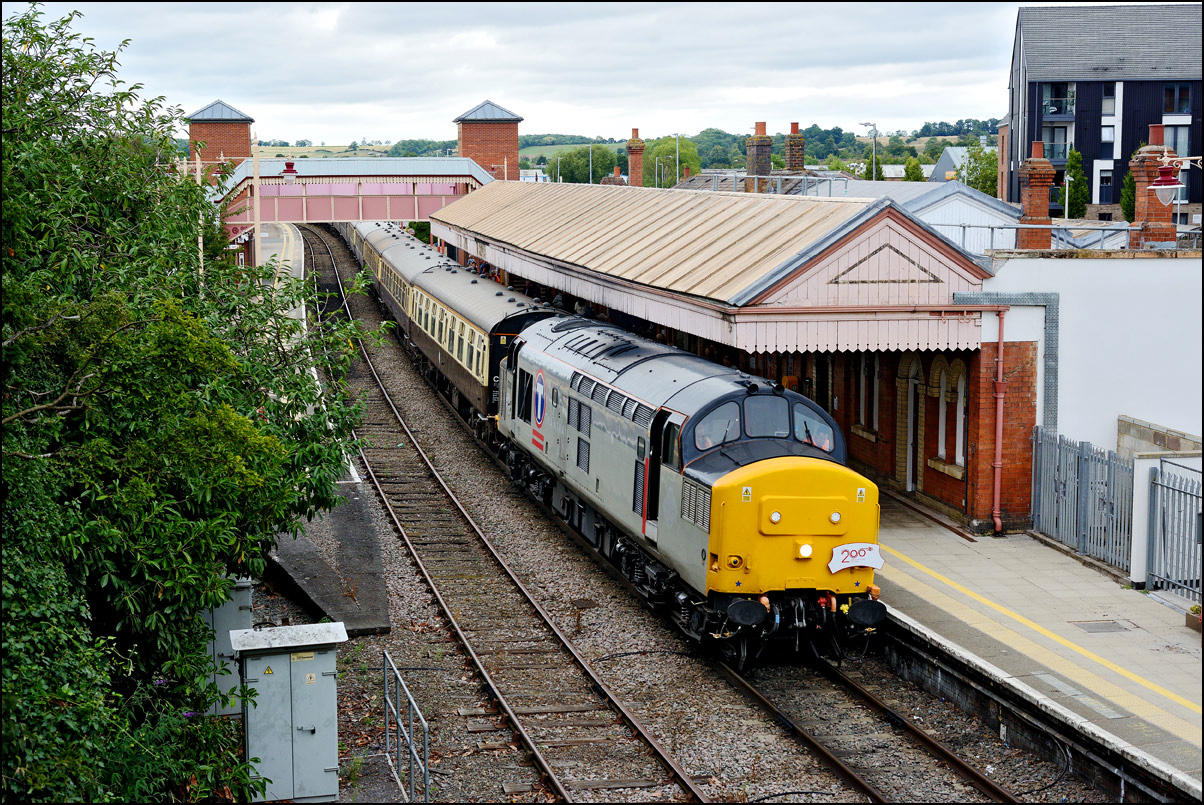 on the final few hundred yards of the line from Honeybourne. Although not in standard sun-on-the-nose lighting the combination of light and shade with a palette of colours makes