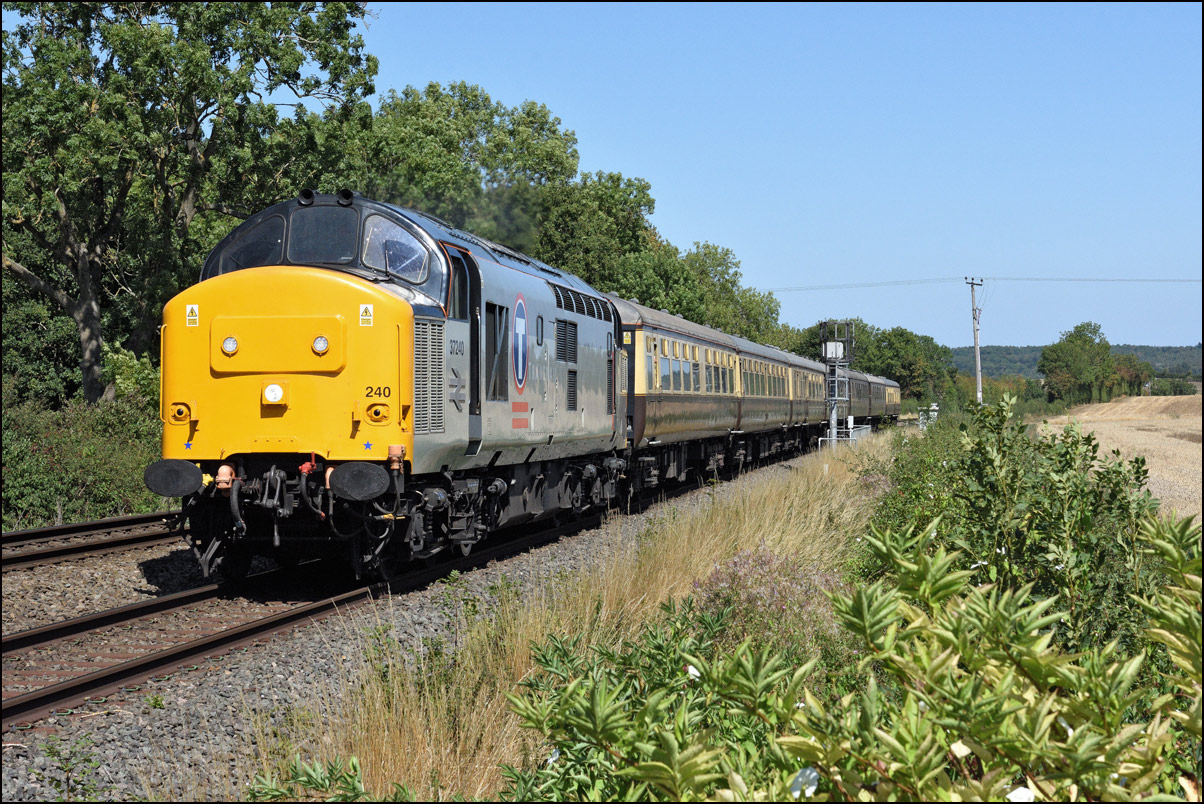 there was another member of the class working the same route from Birmingham to Leamington Spa the next morning. This time it was 37240 leading 7029 Clun Castle from Birmingham New Street to London Paddington