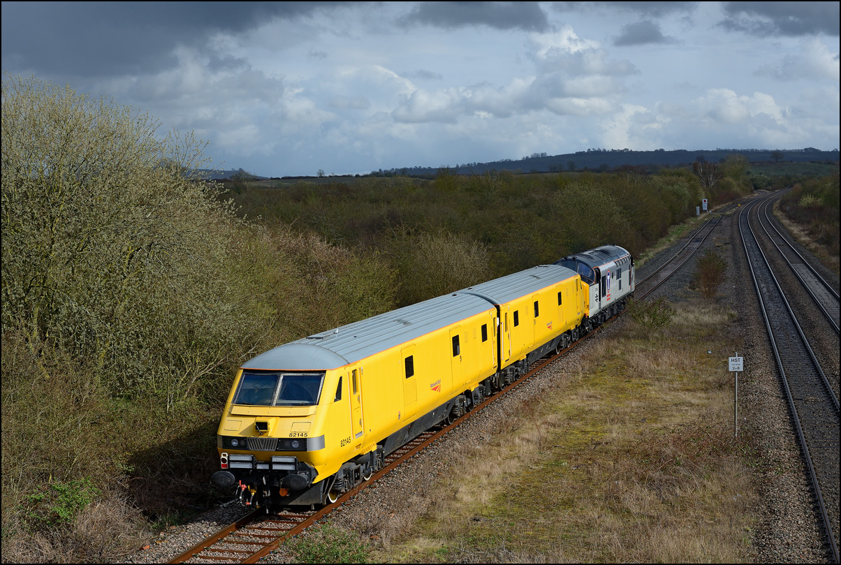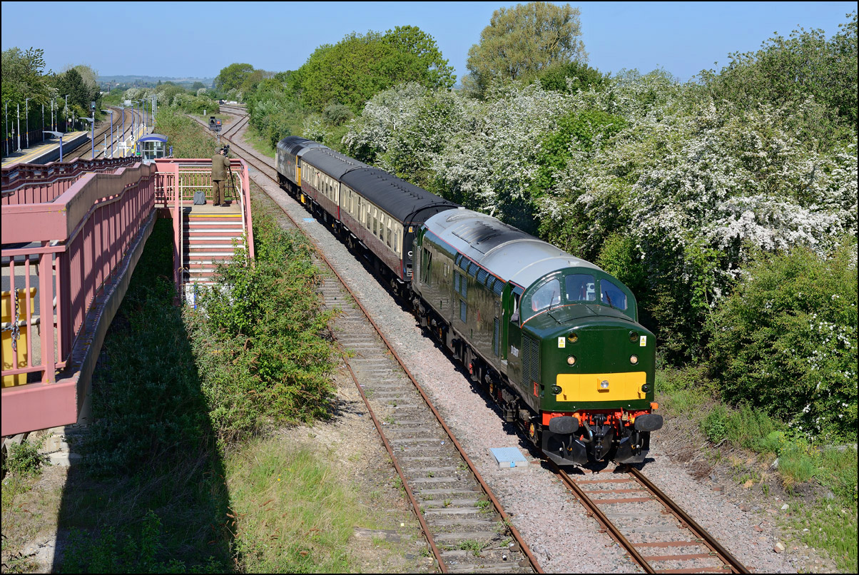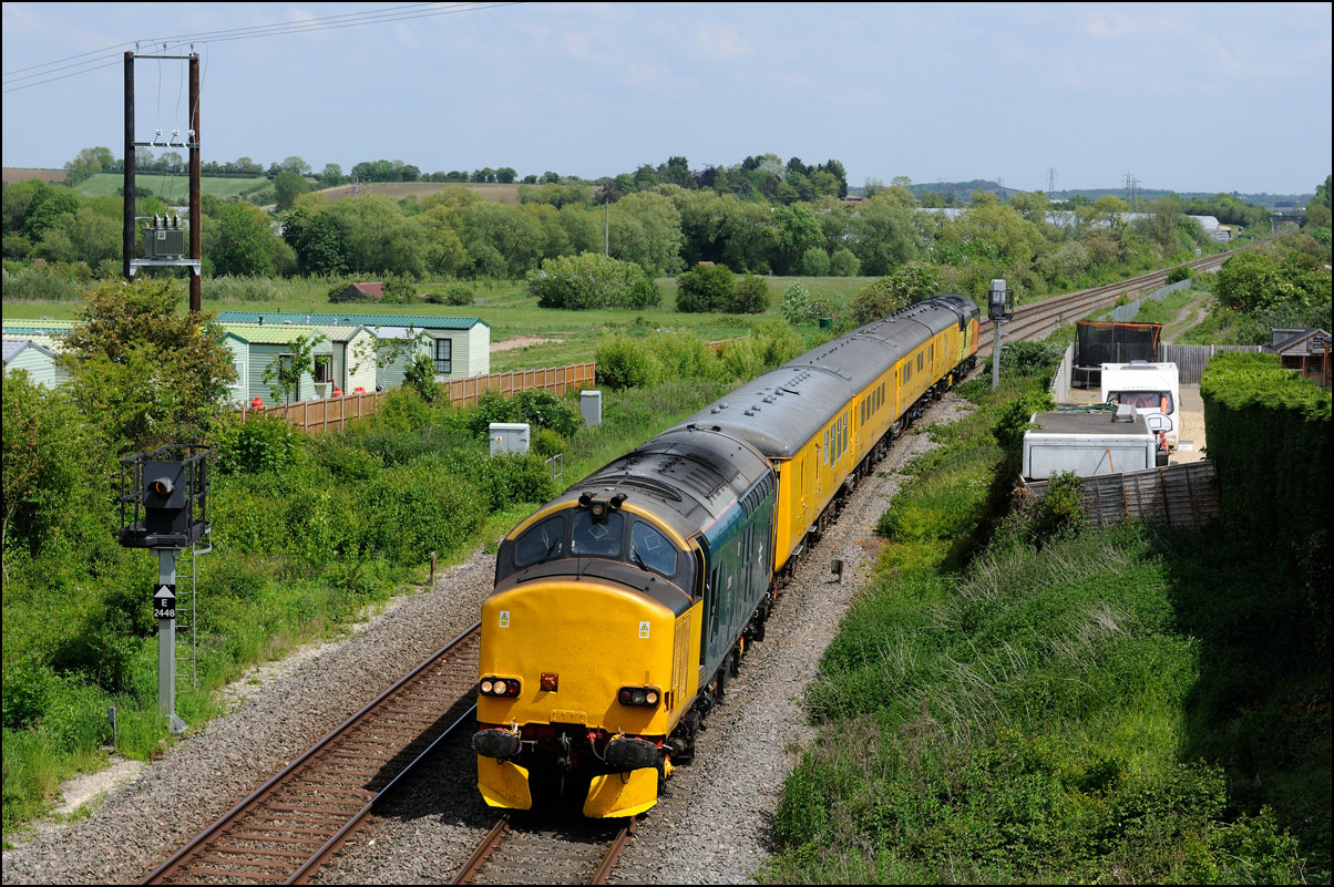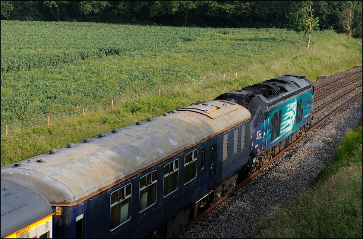 and it ran back to Derby via Didcot, Oxford, Hatton and Birmingham. As I was on the scene I stayed out for the train, which is here seen at Hatton North Junction top-and-tailed