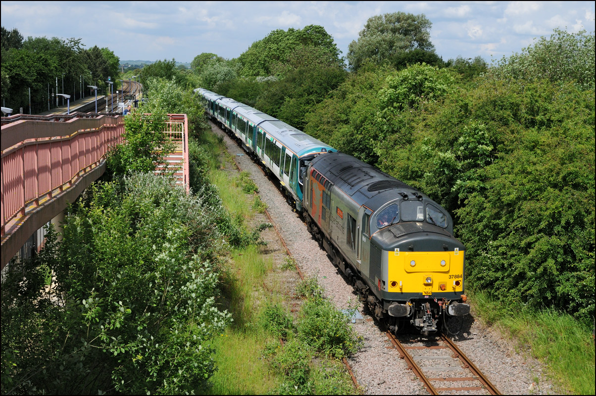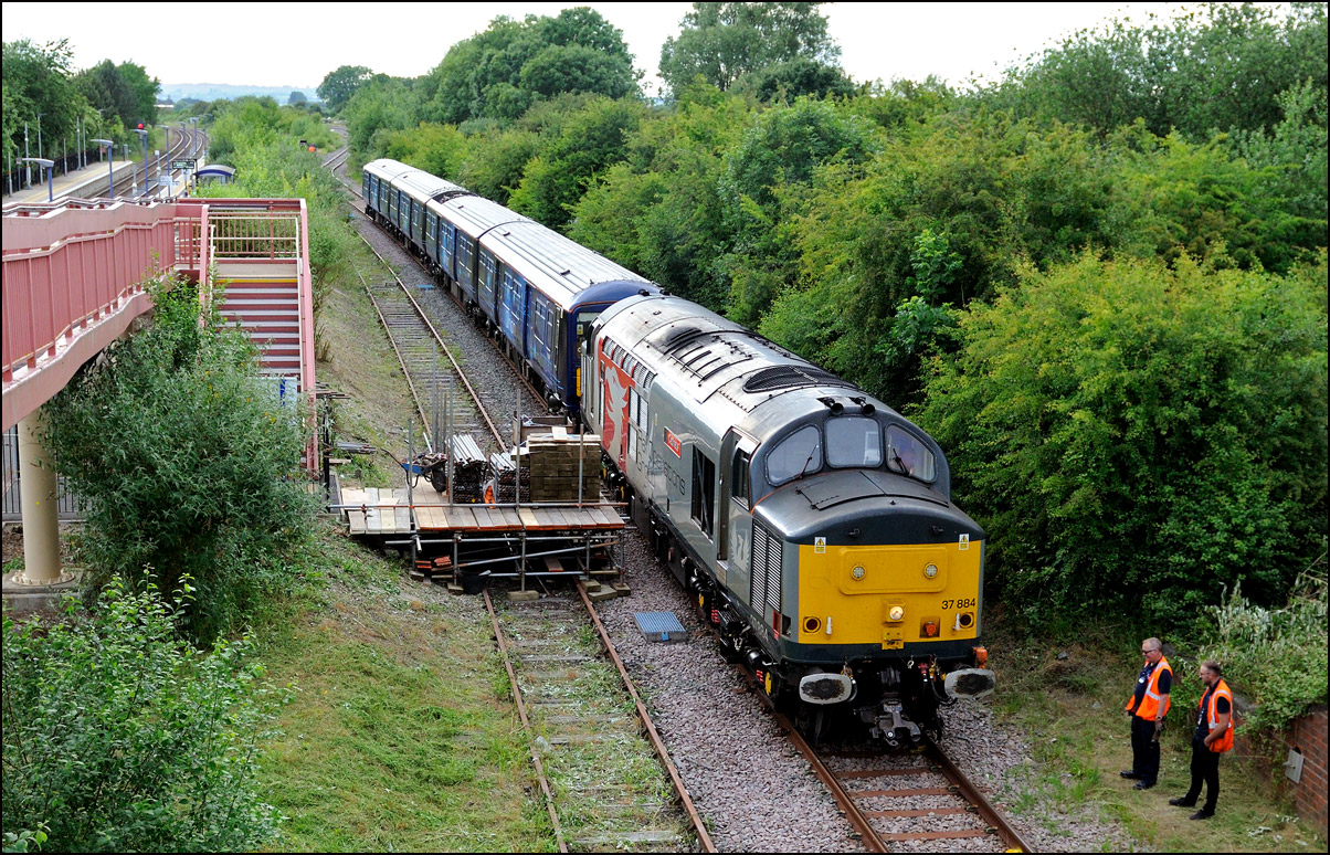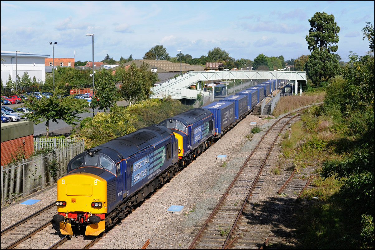 On Friday 26 June 2009, DRS class 37s 37218 and 37607 topped and tailed a 1Q13 from Tyseley to Derby via Stratford, Birmingham Snow Hill, Blakedown, Stourbridge Junction, Round Oak and back again to Hatton North and West Junctions and thence on via Washwood Heath