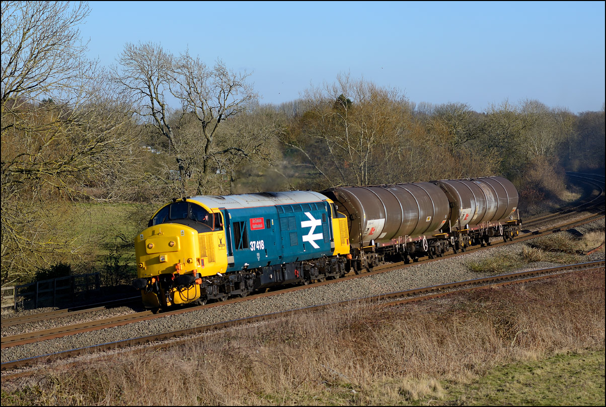than I heard an unmistakeable noise in the distance as 37427, by now heading for Eastleigh after Hinksey, rounded the curve about a mile away at Hatton North. Yet again, the light wasn't up to much, but with so few 37s left.............