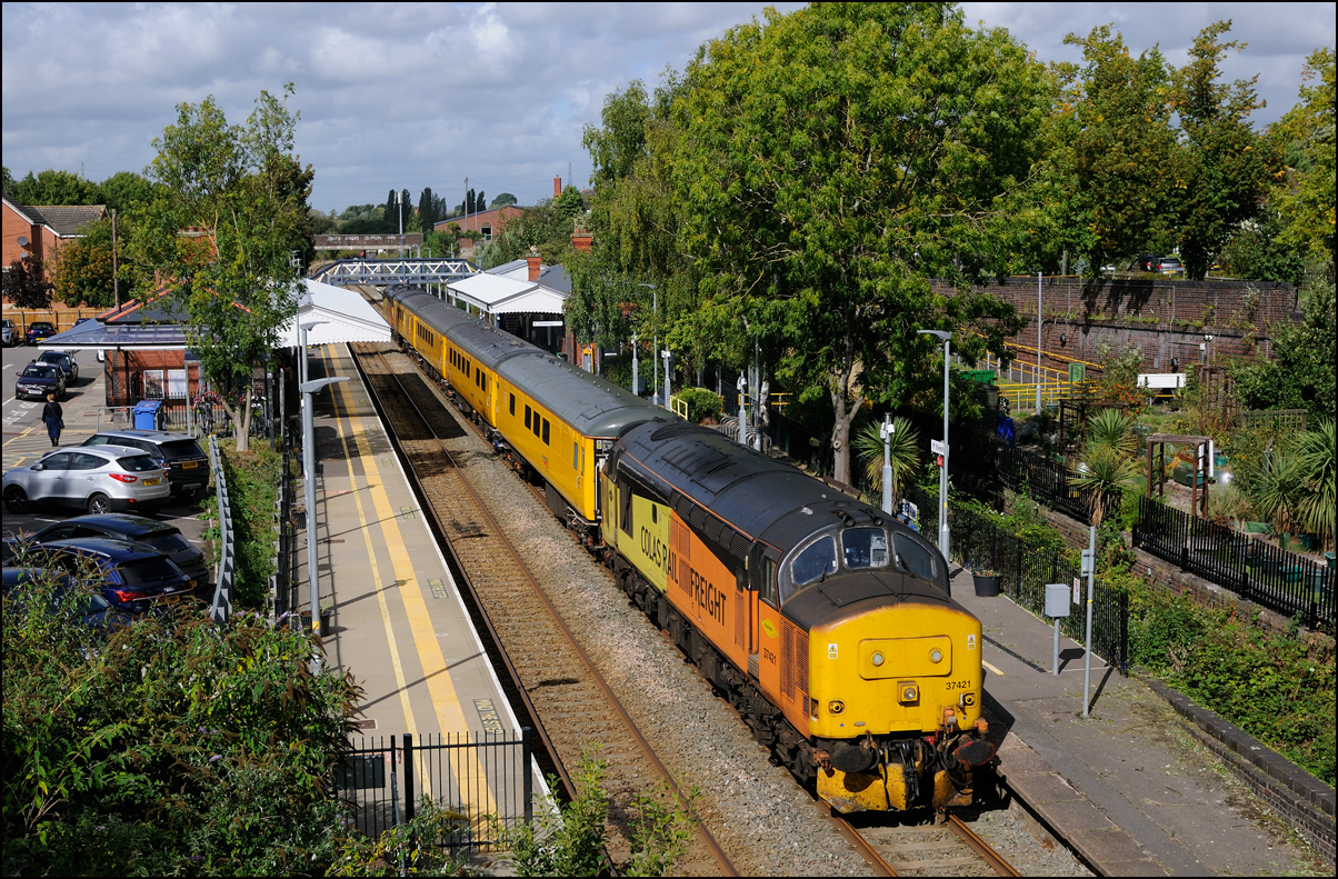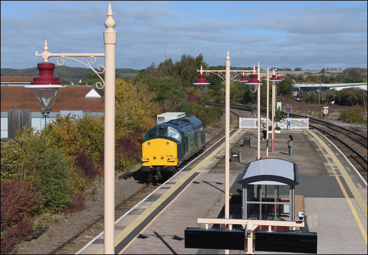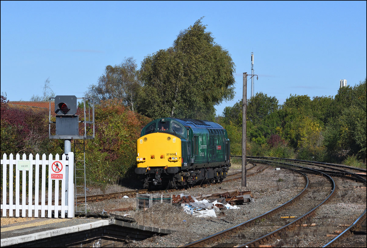 After arriving at Stratford-upon-Avon as 0Z38 on 6 October 2025, 37608 made a run to Hatton and back being scheduled