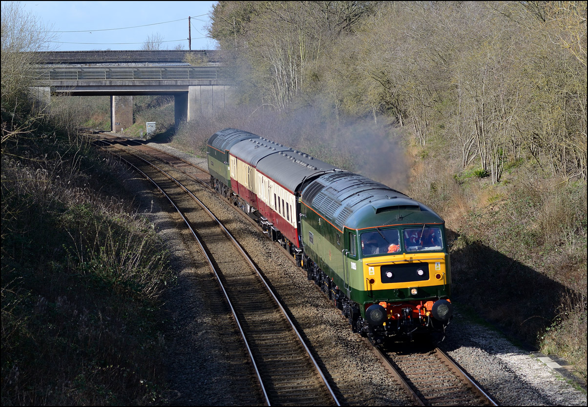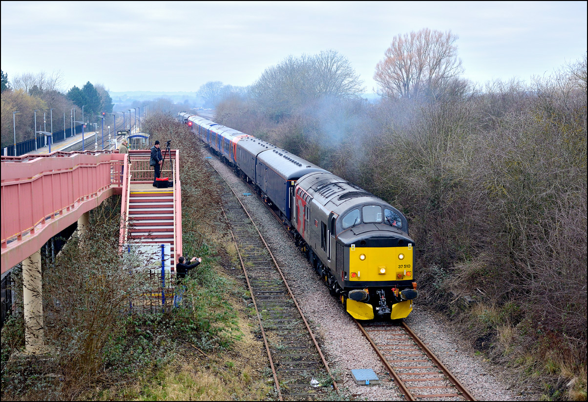 4 of us at Croome Perry were among very few who had the luck to photograph the train in this glorious winter light. 37411 is still in South Wales but has been repainted into a 1960s style green livery.