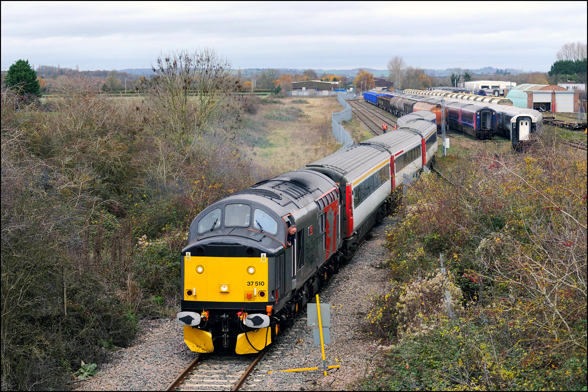 Two stock movements to Long Marston were planned for Monday 24 November 2025. The first was yet another unit drag with a class 37, this time 37407, with a couple of class 350/2 EMUs