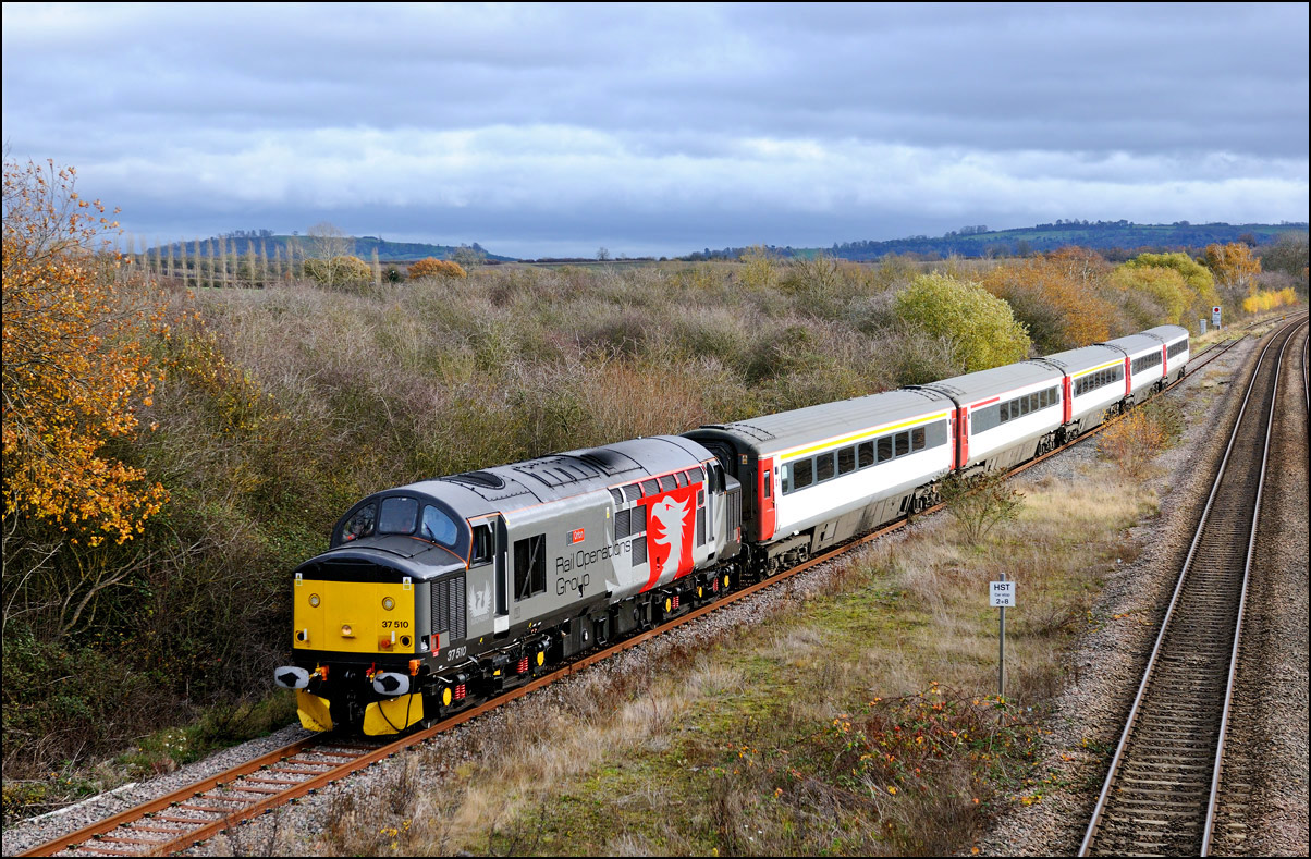 I seem to have photographed little other than class 37s recently. Following a shot of 37800 with a set of ex-TPE stock at Hatton on 31 October 2025