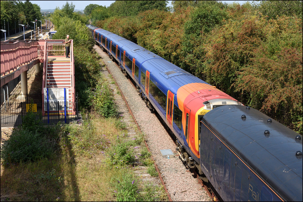 off the carriage roofs as 5Q87 approached the roadbridge under clear signals. I like the challenge of photography in these conditions even though my trousers