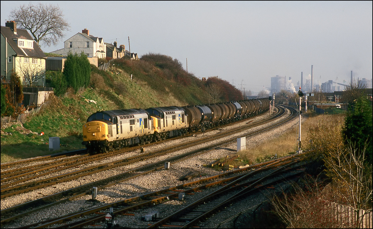 In 1990 the Gulf Albion oil terminal, just off the Birmingham to Wolverhampton near Dudley Port, was still open and receiving regular trains from Waterstone refinery in West Wales always with pairs of 37s in charge. The returning empties ran via the Sutton Park freight line