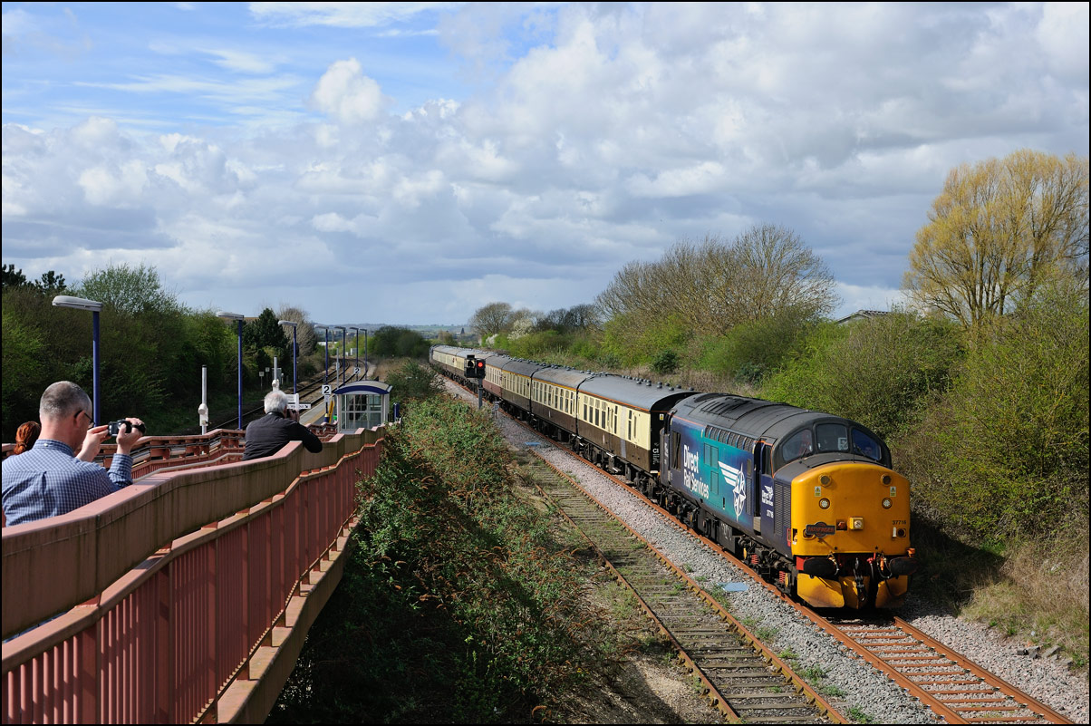 gave the locos a handful of power as he came under the occupation bridge at the rear of the train. The sun had been in and out all morning and judging from reports on various mailing lists the