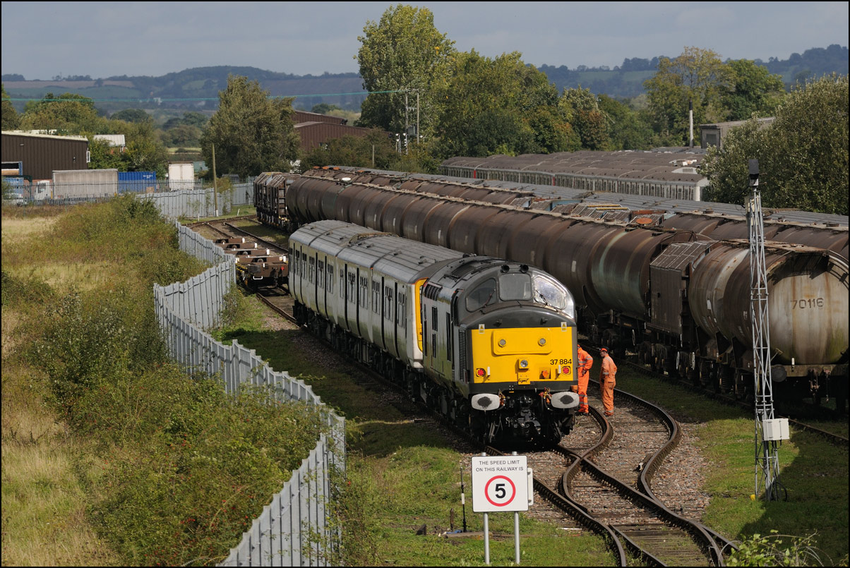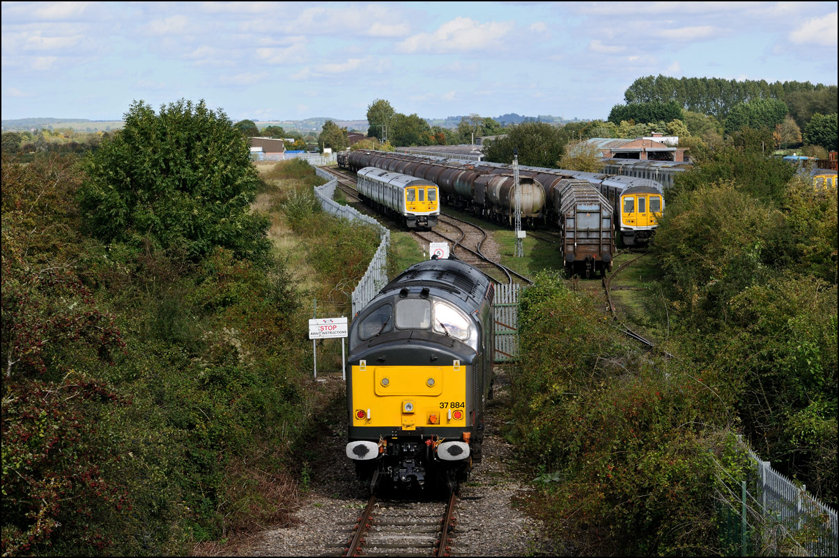 This train was source of a certain amount of confusion on the morning of 18 March 2005. The word was out that 37427 was allocated to a Washwood Heath to Hinksey working conveying concrete sleepers but was running about