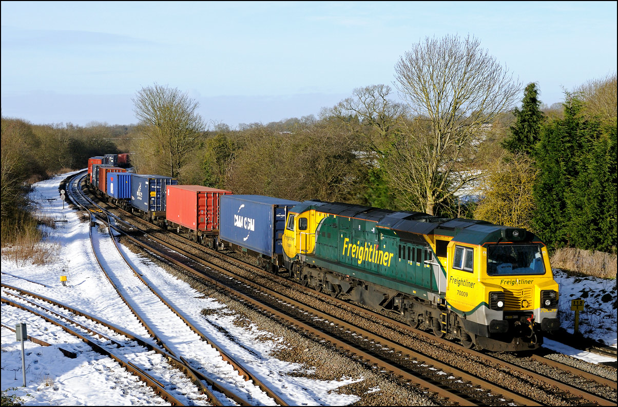 meant that a quick drive to the nearest spot was in order, where it appeared at 13.14, right behind the Chiltern service to Stratford-upon-Avon. The light was even worse than at home but 400asa, 1/1000 at f2 produced