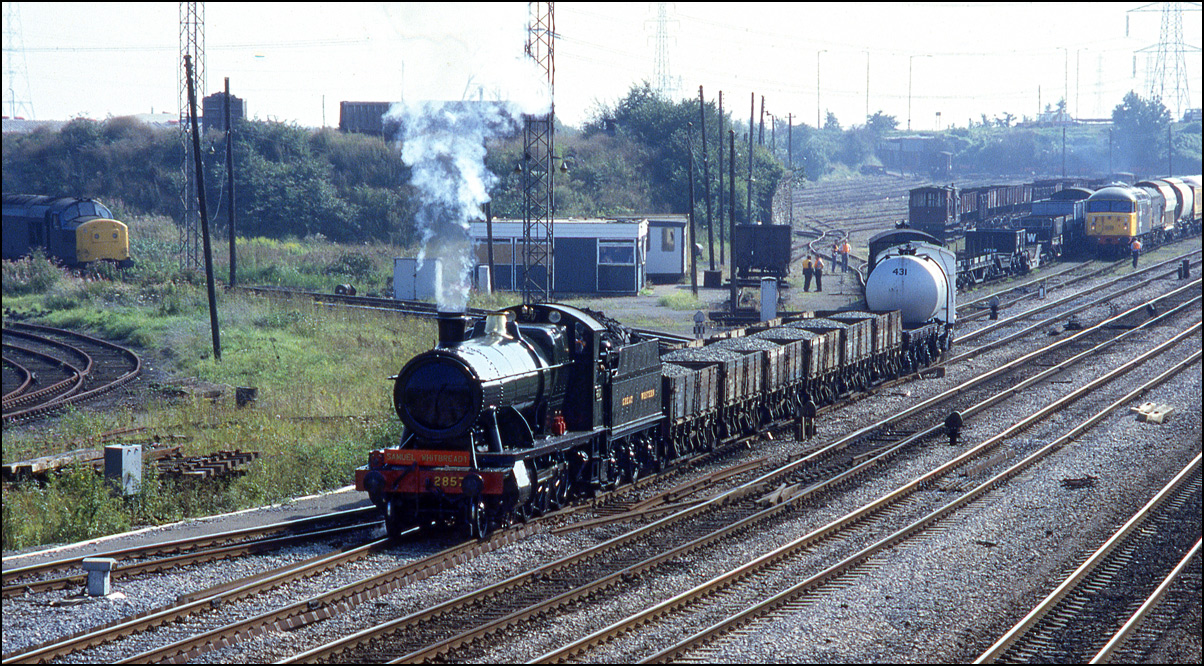 Walsall direction. I imagine that this was heading to Wolverhampton steel terminal; the circuitous routing being necessary because the junction with the main line is not accessible from the north. Note the plate above the drawhook;
