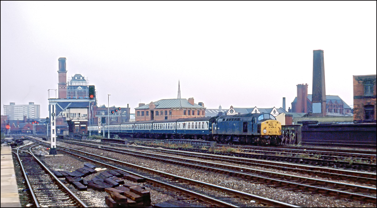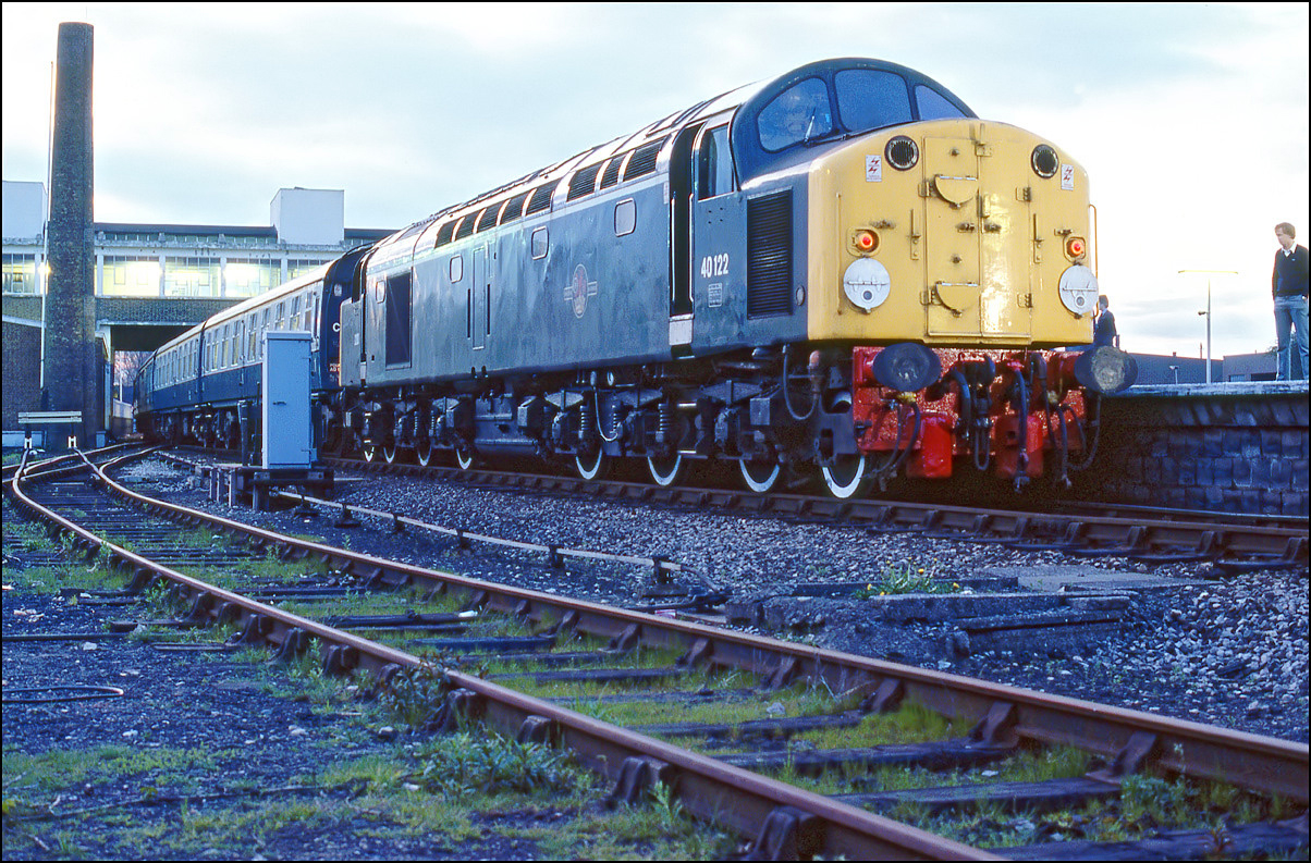 Not long before 40168 ran through Manchester Exchange on 1 November 1984, 40118 arrived at Victoria station with 2J32 from Blackpool. Earlier in the day it had left Manchester with to Blackpool in somewhat better light. |