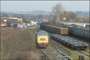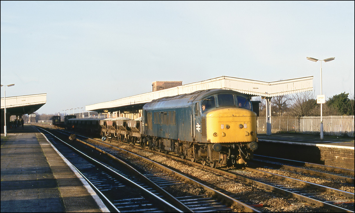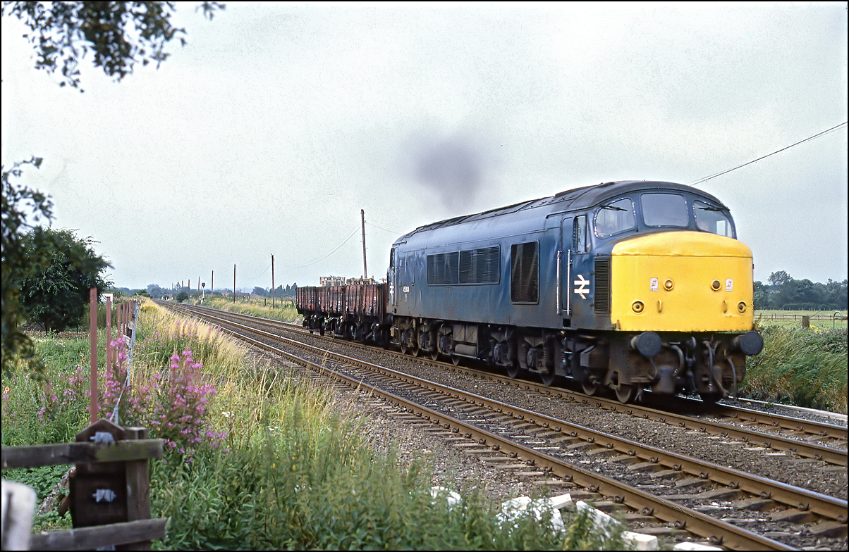 working was quite often a class 33 turn but on this occasion a none too healthy-looking Peak was in charge. It was a shame that 1) the first flat wasn't loaded and 2) that I hadn't