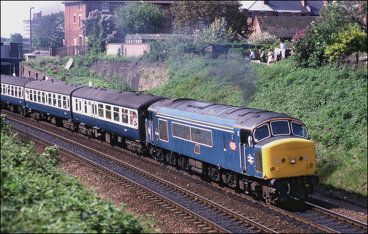 8 June 1986 45103 was in use and I photographed it shortly after passing Wilmcote station. I seem to recall that the steam engine allocated to this train failed and this is borne out by the fact that the Peak hauled the