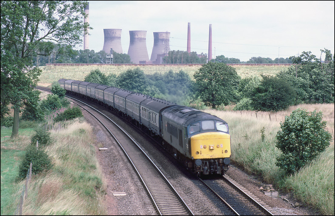 is the Scarborough to Paignton service. In the background is the long-gone Hams Hall power station which, at this time, was about to be demolished. I took this view against