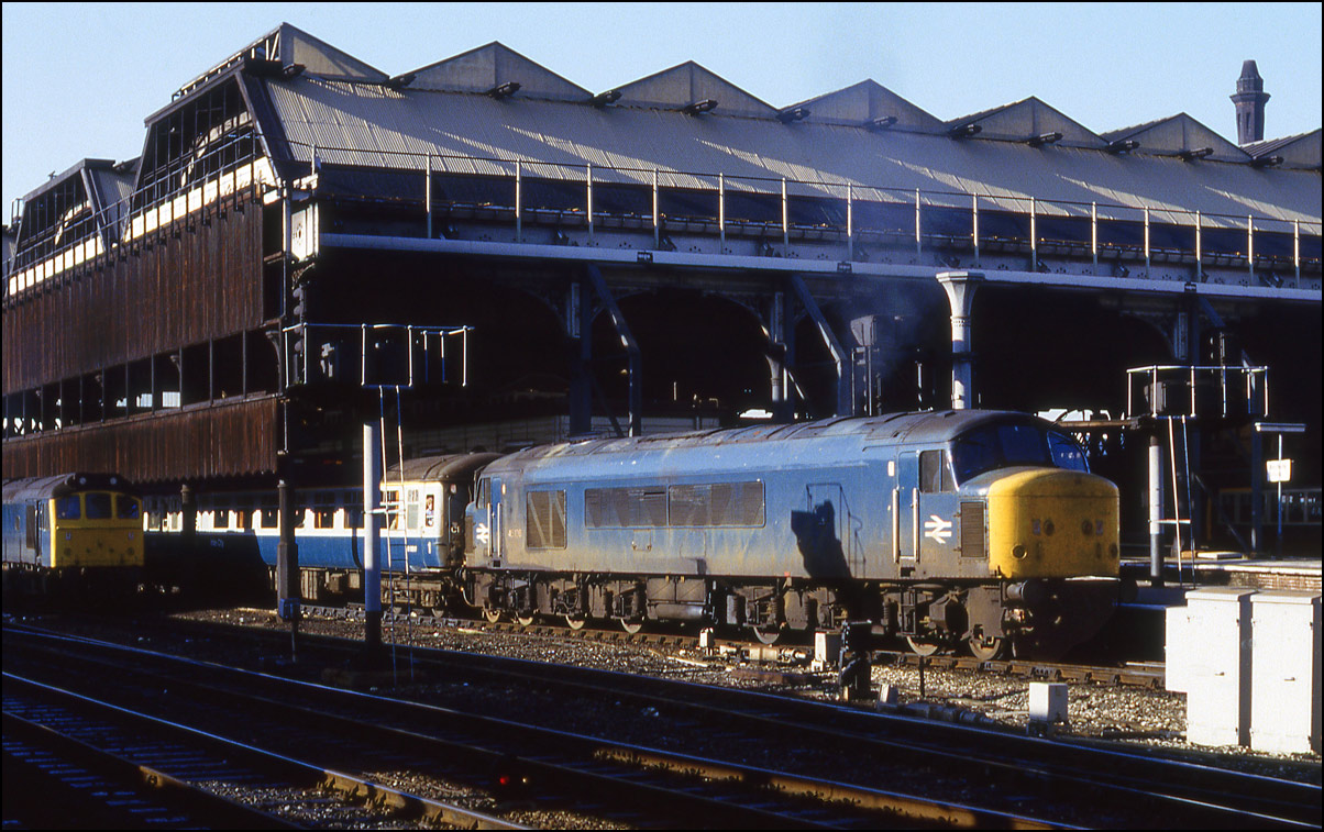 the train would have reversed and probably taken over by a class 47 for the onward journey to Poole. My slide mount noted that this was final such working for class 45 and I guess that