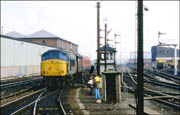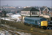 It wasn't just freight traffic seen at Manchester Exchange on 27 February 1986 as this image of 45143 shows. The locomotive was working a Liverpool to York express during the early afternoon