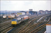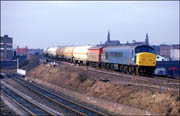 Another class 45/0 is seen here, this time passing what remained of Manchester Exchange station on 3 March 1987, with one of the daily household refuse trains