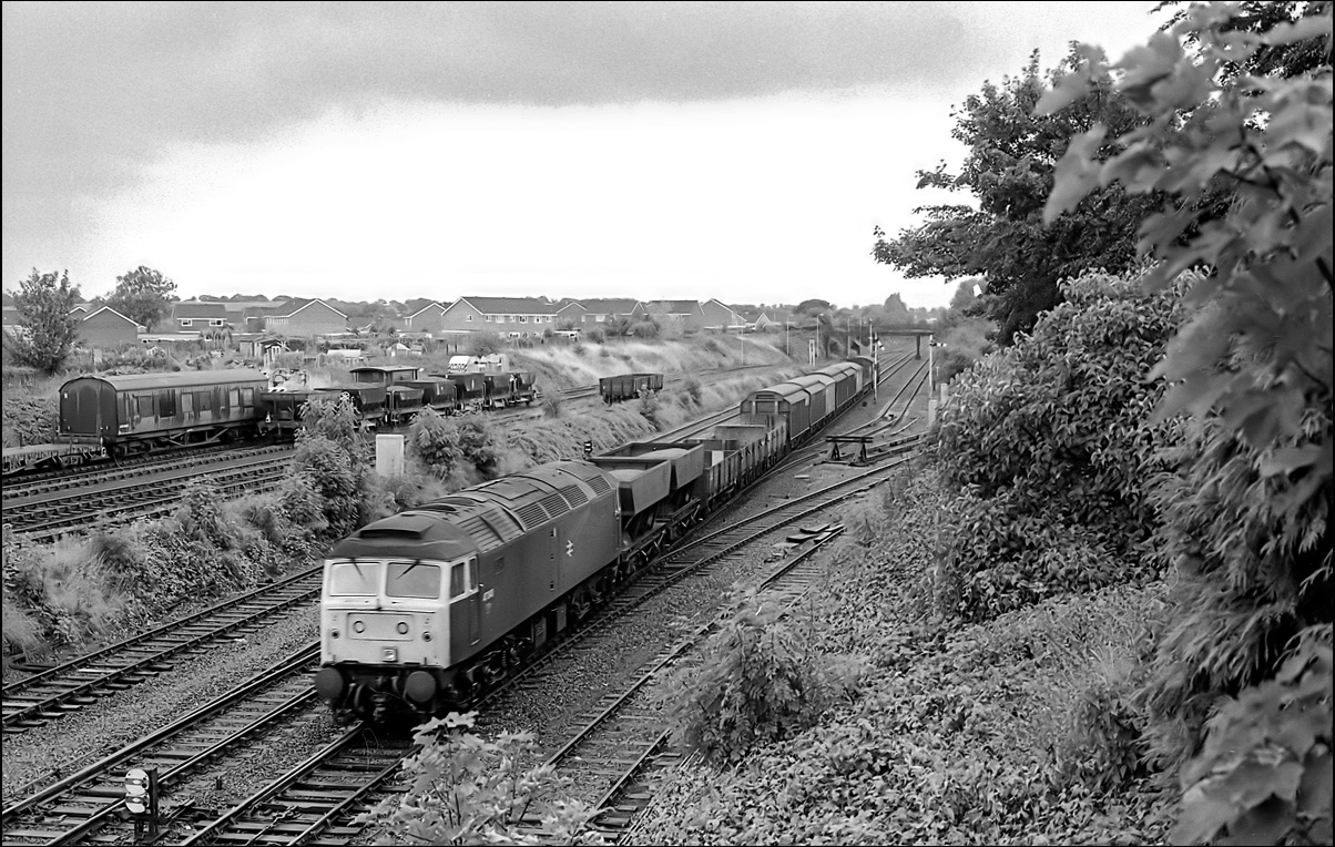 There certainly no sun for this image of 47340 with s Speedlink at Shrewsbury's Sutton Bridge Junction on 27 August 1986.
