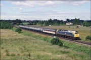 northbound cartic with 47321 working hard on the 1/110 gradient at Budbrook just beyond the site of what is now Warwick Parkway on 19 May 1992,