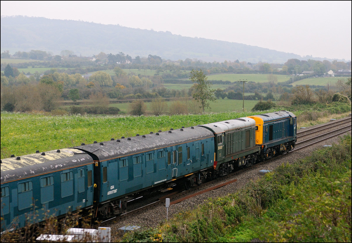 A rare locomotive-hauled charter ran up the North Cotswold Line on Saturday 23 November 2013 and as 1) the sky was clear at home and 2) I hadn't touched my camera for 3 weeks I thought a trip out to be in order. I had a shot in mind at Fladbury